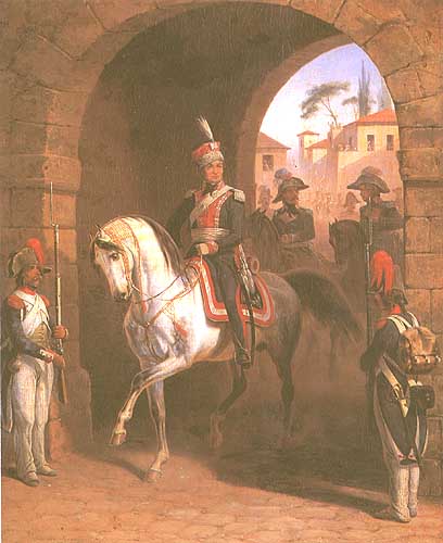 January Suchodoklski (Grodno 1797 - Boim k. Węgrowa 1875) nazywany „polskim Vernetem” malarz-batalista January Suchodolski we wcześniejszym okresie swojej twórczości był samoukiem, który służąc w wojsku amatorsko zajmował się malarstwem. Uczestniczył w powstaniu listopadowym, a po jego upadku wyjechał w roku 1832 do Rzymu, gdzie studiował w pracowni i pod kierunkiem Horace’a Verneta. Do Warszawy wrócił w roku 1837. W 1839 wyjeżdżał do Petersburga, mianowany członkiem tamtejszej Akademii Sztuk Pięknych. W roku 1847 podróżował do Paryża. Był jednym z założycieli warszawskiego Towarzystwa Zachęty Sztuk Pięknych (1859). Malował obrazy batalistyczne, najczęściej z wojen napoleońskich, portrety konne i sceny rodzajowe z motywem żołnierzy i smukłych, pięknych koni arabskich. Patriotyczne treści, żywy koloryt i precyzyjny rysunek obrazów Suchodolskiego przyniosły mu prawdziwą sławę i powodzenie.
