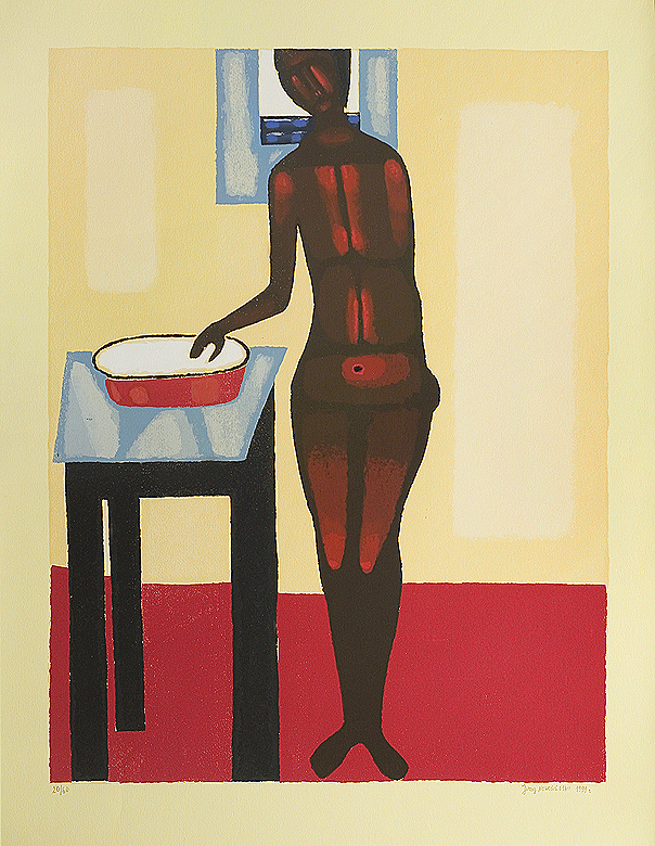 Jerzy Nowosielski (Kraków 1923 - Kraków 2011) w 1940 zaczął studia w Kunstgewerbeschule w Krakowie. W 1942 przebywał przez niecały rok w Ławrze św. Jana Chrzciciela pod Lwowem. Studiował tam sztukę malowania i historię ikon. Po powrocie do Krakowa w 1943 nawiązał ponowne kontakty z kręgiem przyszłej Grupy Krakowskiej. Po wojnie kontynuował studia w ASP w Krakowie pod kierunkiem prof. Eugeniusza Eibischa (1945-1947). Na I Wystawie Sztuki Nowoczesnej w Krakowie w 1948/49 pokazał obrazy utrzymane w nurcie abstrakcji geometrycznej. W latach socrealizmu nie wystawiał, zajmując się w tym czasie scenografią oraz malowaniem cerkwi i kościołów. W 1955 w Łodzi zaprezentował swą pierwszą wystawę indywidualną, w 1956 wziął udział w XXVIII Biennale w Wenecji. W latach 1957-1962 był pedagogiem w Państwowej Wyższej Szkole Sztuk Plastycznych w Łodzi, następnie w Akademii krakowskiej, gdzie wykładał na Wydziale Malarstwa do przejścia na emeryturę w 1993. W drugiej połowie lat 50. osiągnął charakterystyczny styl aktów, pejzaży i scen figuralnych we wnętrzach, który zawdzięczał swej fascynacji ikoną i doświadczeniom z malarstwem sakralnym. W 1976 podjął na nowo realizacje monumentalne, wykonując m.in. malowidła ścienne, stacje Drogi Krzyżowej i projekty witraży w kościele Opatrzności Bożej w Wesołej pod Warszawą (1976-1979). Artysta powszechnie uznawany był za autorytet w dziedzinie sztuki zakorzenionej w wartościach duchowych.