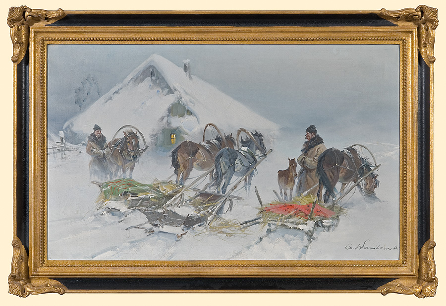 Czesław Wasilewski (ok. 1875 - Warszawa/ Łódź 1946?47) to popularny w okresie międzywojennym warszawski malarz, autor obrazów inspirowanych płótnami Kossaka, Brandta, Chełmońskiego, Wierusza-Kowalskiego czy Fałata. Był samoukiem; wprawdzie w 1911 zapisał się do warszawskiej Szkoły Sztuk Pięknych, ale o jego studiach nic bliższego nie wiadomo. Być może uczęszczał tam (1913-1917) do pracowni Wojciecha Kossaka, dla którego później, na początku lat dwudziestych, przygotowywał podmalówki do obrazów. Uczestniczył w wystawie w Lublinie (1922), wystawiał na Salonach warszawskiej Zachęty (1925,1926, 1927), w Katowicach (1926), Częstochowie (1927), Gdyni (1929), Kaliszu (1931), Poznaniu (1928, 1931). Malował przede wszystkim liczne zaprzęgi, sanny, wyjazdy na polowania, wypadki w podróży, ułanów na patrolu, łosie, sarny i dziki w lesie. Tworzył także nastrojowe pejzaże, wyraźnie inspirowane malarstwem J. Chełmońskiego Rzadziej malował także kwiaty i martwe natury. Utożsamiany z malarzem o nazwisku „Zygmuntowicz”, którego prace pojawiały się na rynku sztuki od trzydziestych lat XX wieku. Stawiany przed tym nazwiskiem inicjał I. lub F., sugerować może imię Ignacy lub Franciszek. Sylwetkę malarza bliżej omówił S. Bołdok w artykule Malarz o dwóch nazwiskach (Art and Business 1992, nr 7-8, s. 48-49).