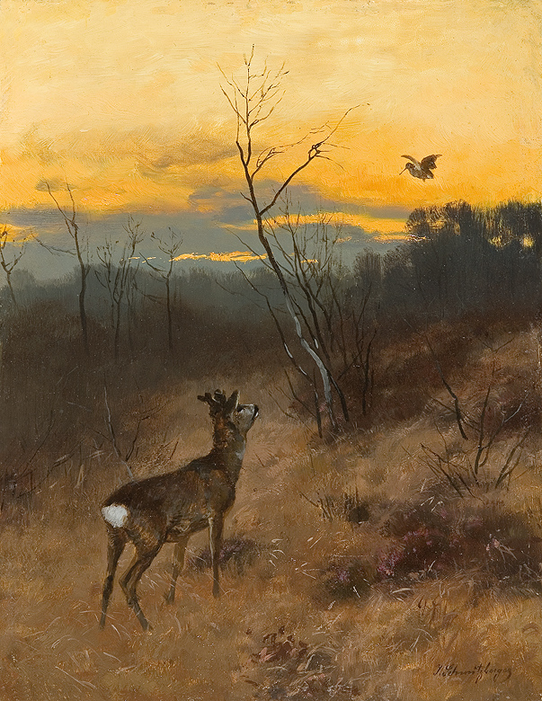 Josef Schmitzberger – malarz niemiecki; animalista i pejzażysta, autor scen myśliwskich. Był synem szlifierza kamieni szlachetnych, od którego początkowo uczył się tej sztuki, pobierając nauki także w Szkole Rzemiosł (Kunstgewerbeschule). Później - krótko - studiował w monachijskiej Akademii Sztuk Pięknych, a także w pracowni Karla Otto. Był długoletnim członkiem monachijskiego Stowarzyszenia Artystów (Münchener Künstlergenossenschaft). Malował sceny z polowań, ptaki i zwierzynę łowną w pejzażu – głuszce, cietrzewie, dzikie kaczki, jastrzębie, polujące sokoły, jelenie, lisy itp. Malował także obrazy przedstawiające koty, które cieszyły się dużym powodzeniem.