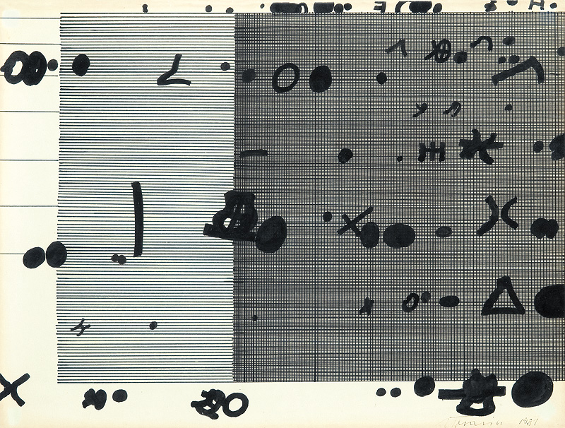 Jan Tarasin (Kalisz 11 IX 1926 - Warszawa 8 VIII 2009) studiował malarstwo w ASP w Krakowie pod kierunkiem prof. Zbigniewa Pronaszki (1946-1951). Jeszcze jako student zadebiutował na I Wystawie Sztuki Nowoczesnej w Krakowie w 1948/49. W połowie lat 50. stworzył cykle litografii: „Nowa Huta i jej mieszkańcy“, 1954, „Dom“, 1955). W pierwszym przeciwstawił się oficjalnemu optymizmowi, w drugim, operując symboliką martwej natury, zawarł treści egzystencjalne i odnoszące do niedawnego dramatu wojny. Po 1956 zaczął malować obrazy niefiguratywne. Układy wyodrębnionych elementów (określanych jako „przedmioty“) umieszczane były przez artystę na płaszczyźnie (cykl „Wnętrze“, 1957) ), lub w aluzyjnej przestrzeni (cykle „Uczta“, 1957, „Brzeg“, 1962-1964, „Przedmioty policzone“, od 1968, „Antykwariat“, 1968). Zasada ta utrzymuje się w jego malarstwie w następnych latach, różnice między okresami twórczości dotyczą sposobu opracowania „przedmiotów“ i ich usytuowania w przestrzeni obrazu lub wobec tła. Od lat 70. „przedmioty“ zmieniają się w graficzne, zwykle czarne znaki na jasnych tłach (cykl „Kolekcja“, od 1971). Tła z kolei bywają iluzyjnie przestrzenne, zróżnicowane walorowo, miękkie. W latach 90. artysta wrócił do kolorystycznego, bardziej malarskiego rozwiązywania zarówno znaków, jak i teł, często ciemnych lub przenikających się z „przedmiotami“ (cykl „Wylęgarnia przedmiotów“, 1992). Tarasin od 1962 jest członkiem „Grupy Krakowskiej“. W 1963-67 uczył na Wydziale Architektury Wnętrz krakowskiej ASP. W 1967 przeniósł się do Warszawy, w 1974 podjął pracę pedagogiczną na Wydziale Malarstwa ASP w Warszawie. W 1987-90 był rektorem tej uczelni. W 1976 otrzymał Nagrodę Krytyki Artystycznej im. Cypriana Kamila Norwida, w 1984 Nagrodę im. Jana Cybisa.; Nagroda na MB Sztuki w San Marino 1965. Równolegle z malarstwem zajmował się rysunkiem i grafiką - do lat 60. litografią, od 1974 serigrafią. W 1974-1981 wydał 8 autorskich „Zeszytów“ z serigrafiami i własnymi tekstami. W 1995 w Galerii Zachęta odbyła się wystawa artysty, której towarzyszył monograficzny katalog.