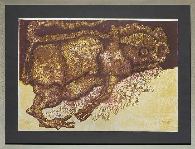 Jan Lebenstein (Brześć Litewski 1930 - Kraków 1999) w latach 1948-1954 studiował malarstwo w ASP w Warszawie pod kierunkiem prof. Eugeniusza Eibischa i Artura Nachta-Samborskiego. W 1955 wziął udział w wystawie w warszawskim Arsenale. Zaprzyjaźniony w czasie studiów z Mironem Białoszewskim, swą pierwszą wystawę indywidualną pokazał w 1956 w Teatrze na Tarczyńskiej. W 1959 zdobył Grand Prix de la Ville de Paris na I Biennale Młodych w Paryżu i w tym roku przeniósł się na stałe do Paryża. Po seriach "figur kreślonych" (na papierze milimetrowym) i "figur hieratycznych" z lat 1955-1958 maluje cykl "figur osiowych" (1958-1962), które wystawia w Paryżu i USA. Równolegle w 1960 zaczyna rysowane "karnety", rodzaj dziennika, który w przyszłości dostarczy motywów wykorzystanych w obrazach. W latach 1964-1965 maluje "Bestiarium", cykl fakturowych, archaizowanych stworów przypominających prehistoryczne wykopaliska. Bezpośrednio po nich wprowadza do swych obrazów postaci ludzkie i fantastyczne, odgrywające sceny ni to mitologiczne, ni to ze snu, często przesycone erotyką. W 1970 projektuje witraże dla Centre du Dialogue w Paryżu. W W 1971 otrzymuje obywatelstwo francuskie 1974 powstają gwasze inspirowane Folwarkiem zwierzęcym George'a Orwella. W latach 1976-1989 tworzy wyłącznie w technice gwaszu i pastelu, podejmując tematykę mitologiczną i zaczerpniętą z Biblii: cykle ilustracji do Księgi Hioba (wyd. 1979) i do Apokalipsy (wyd. 1986) w nowych przekładach Czesława Miłosza. W 1989 powraca do malarstwa olejnego (cykl "Pergamon"). Artysta otrzymał m. in. nagrodę Fundacji im. Alfreda Jurzykowskiego w 1976, Nagrodę Muzeum Archidiecezji Warszawskiej w 1985, Nagrodę im. Jana Cybisa w 1987.