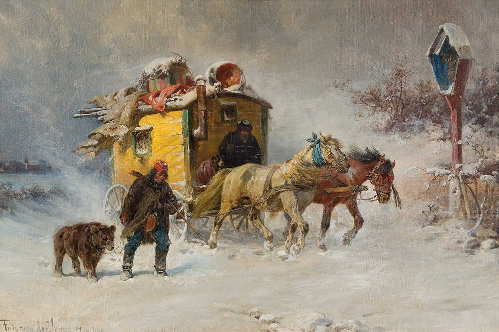 Fritz van der Venne - popularny malarz czynny w Monachium. Ulubionym motywem jego obrazów były konie, które przedstawiał w rodzajowo ujętych scenach na tle, najczęściej zimowego, krajobrazu. Malował zaprzęgi, powozy, sanny, wyjazdy i powroty z polowań, sceny z węgierskiej puszty, a nawet konne, „polskie“ korowody weselne.