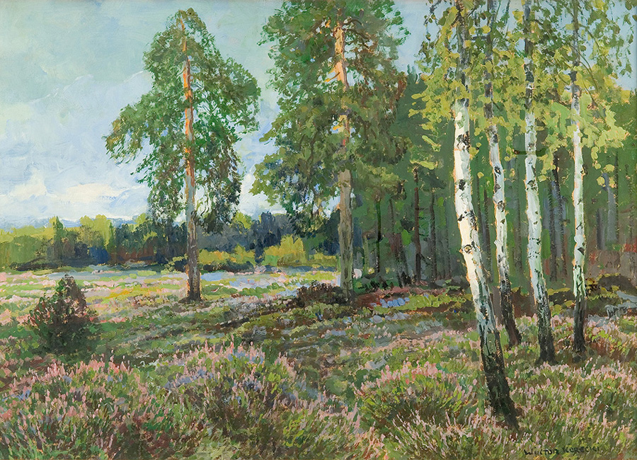 Wiktor Korecki (Kamieniec Podolski 1890 - Komorów k. Warszawy 1980) - malarz pejzażysta - gimnazjum ukończył w Kijowie, tam też studiował w Szkole Rysunkowej Aleksandra Muraszki. Po studiach wrócił do Kamieńca Podolskiego, skąd w roku 1921 wyjechał do Warszawy. Tu miał pracownię na rogu ulic Tamki i Cichej. Niestety zgromadzone tam obrazy spłonęły w czasie powstania 1944 roku. Po powstaniu artysta przebywał w obozie w Pruszkowie skąd trafił do obozu pracy w Lipsku. Do kraju powrócił w roku 1946 i zamieszkał w Komorowie pod Warszawą, a później w Milanówku. Jego nastrojowe krajobrazy emanujące spokojem i pogodą cieszyły się zawsze dużą popularnością. Korecki najczęściej malował pejzaże zimowe z motywem leśnej drogi i strumienia wijącego się wśród śniegów, a obok nich także wiosenne, letnie czy jesienne widoki z Mazowsza.
