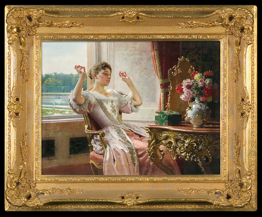Władysław Czachórski (Lublin 1850 - Monachium 1911) – obok Józefa Brandta i Alfreda Wierusza Kowalskiego, był najwyżej cenionym i najbardziej znanym przedstawicielem polskiej kolonii artystycznej w Monachium przełomu XIX i XX wieku. Studia artystyczne rozpoczął u R. Hadziewicza w warszawskiej Klasie Rysunkowej (1866-1867), następnie kształcił się w Akademii Sztuk Pięknych w Dreźnie (1868) oraz od 1869 w Akademii w Monachium, pod kierunkiem H. Anschütza, O. Seitza, A. Wagnera i K. Piloty’ego. Akademię ukończył w roku 1873, odznaczony srebrnym medalem za Scenę z „Kupca weneckiego”. W latach 1874-1877 podróżował do Włoch, Francji i kilkakrotnie przyjeżdżał do kraju. W roku 1879 na stałe osiadł w Monachium i wziął udział w II Wszechświatowej Wystawie Sztuki w monachijskim Glaspalast, na której otrzymał złoty medal za obraz Aktorzy przed Hamletem. Powszechnie ceniony i szanowany, został w roku 1893 został odznaczony bawarskim Orderem Św. Michała. Był członkiem monachijskiego Kunstvereinu, członkiem Akademii berlińskiej i honorowym profesorem Akademii monachijskiej. Brał udział w licznych wystawach, m.in. w Monachium, Wiedniu, Berlinie, Dreźnie oraz w Krakowie, Warszawie, w Łodzi i we Lwowie. Malował obrazy o tematyce szekspirowskiej, martwe natury, wnętrza, pejzaże, portrety i – przede wszystkim – kameralne sceny salonowe z postaciami pięknych i delikatnych dam, które niby „zaczarowane księżniczki w atłasowych szatach żyją w świecie szczęśliwości, beztroski, wiecznej pogody, ciągłego uśmiechu i wytworności”. Doskonałość warsztatu, elegancja, finezja i mistrzostwo w odtwarzaniu detali bogatych strojów, tkanin, kwiatów i zbytkownych przedmiotów sprawiły, że właśnie te obrazy znajdowały najwięcej nabywców. Sukces i ogromne powodzenie Czachórskiego na europejskim rynku sztuki spowodowały, że tylko niewiele jego dzieł trafiło do zbiorów polskich. Większość z nich zgromadziła monograficzna wystawa prac artysty przygotowana w roku 2001 przez Muzeum Lubelskie w Lublinie.