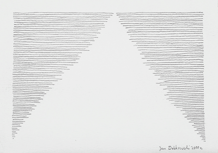 Jan Dobkowski (Łomża 1942, mieszka w Warszawie) studiował w latach 1962-1968 na Wydziale Malarstwa warszawskiej ASP pod kierunkiem prof. Juliusza Studnickiego i Jana Cybisa. Będąc jeszcze na studiach, w 1966, utworzył duet artystyczny, w którym jego partnerem był Jerzy (Jurry) Zieliński. Ich pierwsza wspólna wystawa pn. Neo-Neo-Neo odbyła się w Warszawie w 1967. Wystawiali wspólnie do 1970. W 1968 powstały pierwsze zielono-czerwone obrazy Dobkowskiego (używającego w tym czasie pseudonimu Dobson). W pracach tych, operujących giętkimi, falistymi liniami, w których upatrywano wpływów secesji, artysta używał sposobów rodem z op-artu dla wywołania złudzeń optycznych (wirowanie, mżenie, pozorny ruch form). Równolegle z obrazami tworzył też formy z płyt i folii do montowania w przestrzeni. Złoty medal na Sympozjum Złotego Grona w Zielonej Górze w 1971 i blisko roczny pobyt w USA na stypendium Fundacji Kościuszkowskiej w 1972 to kolejne etapy pełnej sukcesów kariery malarza. Wyraźną zmianę nastroju i wymowy jego prac przyniosły wydarzenia 1980-1981 roku, zwłaszcza wprowadzenie stanu wojennego. Monochromatyczne, ciemne płótna znaczył wtedy nikłymi, wiotkimi liniami rysunku. Najczęstszym motywem były patriotyczne i religijne symbole, dopowiadane tytułami nawiązującymi do realiów czasu. Kolejna radykalna zmiana nastąpiła ok. 1990. Symbolicznym zwiastunem nowego okresu stał się olbrzymi, radosny, eksplodujący bogactwem barw, kształtów i ruchu obraz ...a życie sobie płynie... (394 x 588 cm) z 1990-1991. Podobne cechy formalne charakteryzują twórczość artysty w całej dekadzie lat 90. Równolegle z malarstwem Dobkowski pracuje nad rysunkiem, będącym bardzo ważnym dopełnieniem jego twórczości.