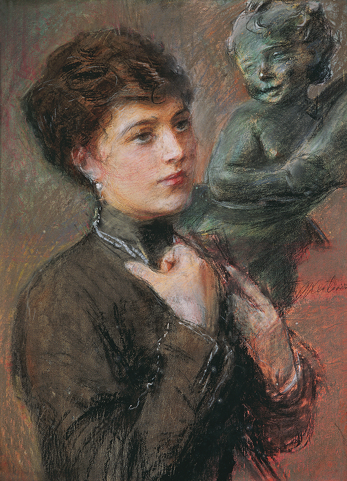 Teodor Axentowicz (Braszów w Siedmiogrodzie 1859 - Kraków 1938) – malarz, pastelista, litograf – był jednym z najbardziej znanych i cenionych malarzy polskich. Kształcił się w Akademii Sztuk Pięknych w Monachium pod kierunkiem Gabriela Hackla, Aleksandra Wagnera, Gyuli Benczúra. Studia uzupełniał w Paryżu, gdzie następnie przebywał przez lat kilkanaście. Brał udział w paryskich Salonach; w 1890 otrzymał członkostwo Société Nationale des Beaux-Arts. W tym czasie wielokrotnie wyjeżdżał również do Londynu. W 1895 powrócił do kraju i zamieszkał na stałe w Krakowie, powołany na profesora tamtejszej Szkoły Sztuk Pięknych (od 1900 Akademii). W uczelni tej nauczał nieprzerwanie do 1934, dwukrotnie pełniąc funkcję rektora (lata 1910-11 oraz 1927-28). Był jednym z członków-założycieli Towarzystwa Artystów Polskich „Sztuka”, członkiem wiedeńskiej „Secesji” i współpracownikiem jej pisma „Ver Sacrum”. Powodzenie przyniosły mu zwłaszcza idealizowane wizerunki wytwornych dam oraz wdzięczne portrety dziecięce. Malował też obrazy o tematyce rodzajowej; był jednym z pierwszych malarzy Huculszczyzny i Hucułów. Tworzył obrazy historyczne i kompozycje symboliczne związane z upływem czasu, przemijaniem, starością. We wczesnym, monachijskim okresie były to obrazy utrzymane w duchu akademickiego realizmu; na późniejszą twórczość artysty wywarło wpływ angielskie malarstwo XVIII w. oraz dzieła malarzy współczesnych - Boldoniego, Whistlera, Sargenta. Jego obrazy cechuje dekoracyjność, elegancja, świeżość subtelnej gamy kolorów i delikatna secesyjna stylizacja. Początkowo malował olejno i akwarelą, a po 1890 przede wszystkim mistrzowsko opanowaną techniką pastelu. Zajmował się ilustratorstwem i litografią, projektował plakaty wystaw „Sztuki”.