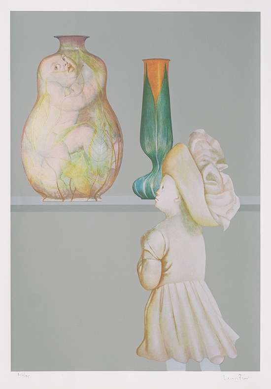 Leonor Fini, z pochodzenia Argentynka, niemal całe życie spędziła we Francji. Nie ukończyła żadnej szkoły artystycznej. W młodości fascynowała się twórczością prerafaelitów, Aubreya Beardsleya i Gustava Klimta. Jej pierwsza wystawa w Paryżu w 1935 zainteresowała surrealistów, poznała Paula Eluarda, Maxa Ernsta, René Magritte’a i Victora Braunera. Odtąd uczestniczyła w niektórych wystawach ruchu surrealistycznego. Interesowała ją biologiczna wegetacja, rytmy przyrody, przemijanie, dla których znajdowała symboliczny wyraz w pracach z późnych lat 40. Od początku aktualnym wątkiem jej twórczości, który od lat 60. zawładnął nią niemal niepodzielnie, był obsesyjny erotyzm, symbolizowany zwłaszcza przez zmysłowe koty-sfinksy. Kocie twarze i sylwetki miały też postaci malowanych przez nią kobiet, nimf, bohaterek mrocznych i wyrafinowanych dramatów. Ważnym wątkiem jej twórczości były portrety o zamglonym, sennym wyrazie. Była żoną Konstantego Jeleńskiego (1922-1987).