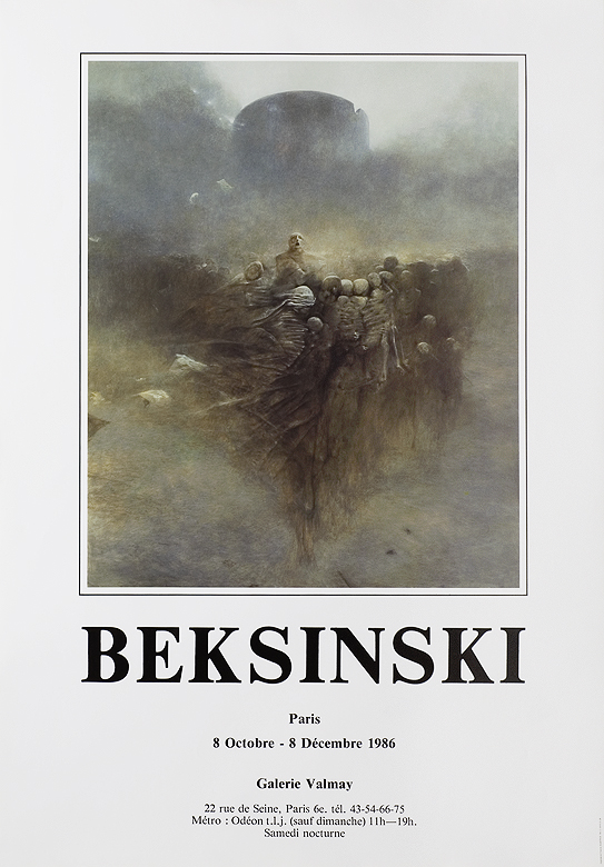 Zdzisław Beksiński (Sanok 24 II 1929 - Warszawa 21 II 2005) studiował w latach 1947-1952 na Wydziale Architektury Politechniki Krakowskiej. Był artystą samoukiem, który osiągnął niekwestionowaną pozycję w polskiej sztuce współczesnej, potwierdzoną obecnością jego prac na prestiżowych wystawach i w kolekcjach muzealnych. Początkowo zajmował się fotografią, którą interesował się od lat studenckich, po 1956 zyskując uznanie jako twórca fotogramów o estetyce opartej o efekty fakturowe. W latach 1958-1962 tworzył abstrakcyjne obrazy-reliefy o bogatej fakturze, głównie metalowe, będące odmianą malarstwa materii. Pod koniec tego okresu powstawały ażurowe formy o kształtach figur i pełnoplastyczne rzeźby w metalu. Kolejnym etapem jego twórczości były lata 1962-1974, kiedy poświęcał się głównie rysunkowi. W latach 60. rysował piórkiem i tuszem figuralne kompozycje odznaczające się karykaturalną deformacją postaci. Od końca lat 60. tworzył rysunki węglem i kredkami, będące monochromatyczną odmianą jego równoległej twórczości malarskiej. Od 1974 zajmował się niemal niepodzielnie malarstwem. Jego charakterystyczny styl bazował na perfekcji technicznej, której towarzyszyła niezwykłość wizji. Malował świat po katastrofie, naznaczony piętnem śmierci i rozpadu. Jego obrazy zaludniają postaci i stwory o ludzkich wprawdzie bądź zwierzęcych kształtach, lecz o cechach fantomów, automatów lub rozpadających się trucheł. Artysta nie nadawał swym obrazom i rysunkom tytułów (poza porządkującymi symbolami), akcentując w ten sposób swój brak zainteresowania dla literackiej strony przedstawień. Sam mówił, że malując całkowicie poddaje się wizji, „fotografuje“ ją. W ostatnich latach włączył do swego warsztatu artystycznego elektroniczne techniki generowania obrazu, które wykorzystywał do tworzenia komputerowych fotomontaży. Sztuka Beksińskiego, wielokrotnie wystawiana i omawiana, budzi skrajne emocje wśród znawców i publiczności.