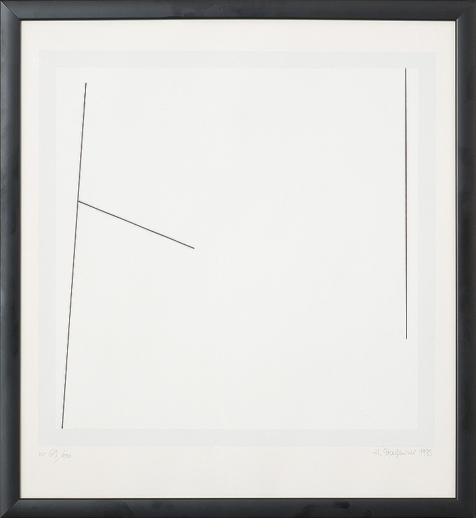 Henryk Stażewski (Warszawa 9 I 1894 - Warszawa 10 VI 1988) studiował w Szkole Sztuk Pięknych w Warszawie w latach 1913-1920. W początkach kariery malował martwe natury. Przejściowo wystawiał z ugrupowaniem „Formiści” (1922). Wziął też udział w Wystawie Nowej Sztuki w Wilnie w 1923. O tego czasu tworzył pod wpływem konstruktywizmu. Obok kompozycji malarskich trudnił się grafiką książkową, projektował wnętrza, sprzęty, a także scenografie – były to w większości prace teoretyczne i studyjne. Polskie i międzyna-rodowe ugrupowania awangardy, z którymi wystawiał i współpracował jako publicysta, to kolejno: „Blok” (1924-1926), „Praesens” (1926-1930), „Cercle et Carré” (1929-1931), „Abstraction-Création” (1931-1939), „a. r.” (1932-1939). Należał też do Koła Artystów Grafików Reklamowych (1933-1939). W 1930 był współorganizatorem zbiórki dzieł artystów międzynarodowej awangardy przeznaczonych dla muzeum łódzkiego (obecnie w Muzeum Sztuki w Łodzi). Po II wojnie mieszkał i działał w Warszawie. W latach 40. i 50. podejmował próby dostosowania się do postulatów sztuki figuratywnej. Z tego okresu pochodzą rysunkowe i malarskie kompozycje o tematyce pracy, budowy, a także projekty monumentalne. Po 1956, uznawany powszechnie za patrona polskiej awangardy, uprawiał już wyłącznie abstrakcję o konstruktywistycznym rodowodzie. Tworzył cykle prac, będących studiami płaszczyzn, linii, kolorów w różnych układach względem siebie. Przy pozorach chłodnej perfekcji umiał nasycić je emocją bezpośredniego dotknięcia, śladu ręki. Obok malarstwa i form pochodnych, jak collages, reliefy, multiple, tworzył formy przestrzenne i grafikę (autoryzował serigraficzne repliki swoich prac). Był laureatem wielu nagród i odznaczeń krajowych i zagranicznych, w tym Nagrody Herdera, Wiedeń 1972.