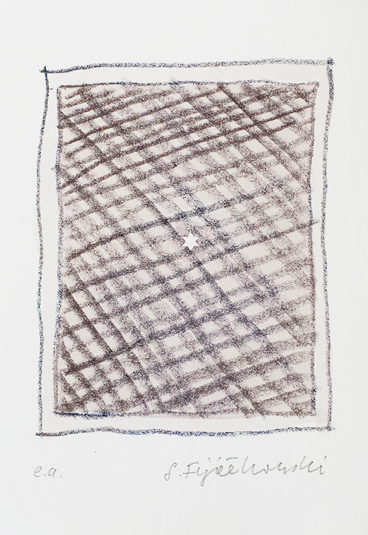Stanisław Fijałkowski (Zdołbunow na Wołyniu 1922 - Łódź 2020) w latach 1944-1945 przebywał na robotach przymusowych w Królewcu. W latach 1946- 1951 studiował w Państwowej Wyższej Szkole Sztuk Plastycznych w Łodzi pod kierunkiem Władysława Strzemińskiego, Stefana Wegnera i Ludwika Tyrowicza, u którego uzyskał dyplom. W latach 1947-1993 był pedagogiem w macierzystej uczelni, od 1983 profesorem. Pełnił funkcje prorektora i dziekana Wydziału Grafiki. Wykładał też za granicą: w Mons (1978, 1982), Giessen (1989-1990), Marburgu (1990). Jest wiceprezydentem Międzynarodowego Stowarzyszenia Drzeworytników XYLON w Szwajcarii i przewodniczącym Polskiej Sekcji tej organizacji. Należy do zagranicznych Akademii nauk i sztuk w Salzburgu i Brukseli. Jest laureatem Nagrody Krytyki Artystycznej im. Cypriana Norwida 1971, Nagrody im. Jana Cybisa 1990 i wielu innych wyróżnień. Jako pierwszy w Polsce przetłumaczył teksty Wasyla Kandinskiego („Punkt i linia a płaszczyzna” i „O duchowości w sztuce”), oba wydane drukiem, oraz Kazimierza Malewicza „Świat bezprzedmiotowy”. Malarstwo Fijałkowskiego bazuje na skromnym zasobie abstrakcyjnych znaków i ograniczonej gamie barwnej. Kompozycje, w większości sugerujące ujęcia pejzażowe czy szerzej – przestrzenne, budowane są jakby pojedynczymi dotknięciami pędzla. Każdy szczegół nabiera ważności, śledzi się każdy niuans barwy czy faktury. Charakterystyczne kształty i motywy powtarzają się w różnych konfiguracjach w pracach artysty niczym wyrazy, z których układa za każdym razem inną opowieść. Obrazy noszą zazwyczaj poetyckie tytuły, często wpadające w tony groteskowe czy surealistyczne. Cechy te składają się na niezwykłe, intrygujące, autonomiczne zjawisko artystyczne. Malarstwu Fijałkowskiego od początku lat 60. towarzyszy czarno-biała grafika, głównie linoryt i drzeworyt, sporadycznie litografia.