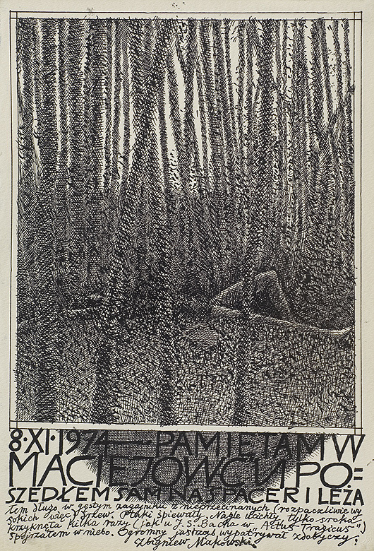 Zbigniew Makowski (Warszawa 31 I 1930 - Warszawa 19 VIII 2019) studiował w ASP w Warszawie w latach 1950-1956, dyplom uzyskał w pracowni Kazimierza Tomorowicza. Początkowo skłaniał się ku surrealizmowi - podczas pobytu w Paryżu w 1962 zetknął się z André Bretonem i międzynarodowym ruchem Phases. Jednak decydujący wpływ na wyraz jego sztuki wywarły pozamalarskie zainteresowania, jakim się oddaje. Jest literatem, poetą, erudytą, zwłaszcza zaś znawcą szerokiego spektrum filozofii i wiedzy tajemnej wielu kultur. Znawstwo to wykorzystuje w swoich pracach malarskich, rysunkowych, a także w unikatowych książkach, które własnoręcznie wykonuje na specjalnie preparowanych papierach. W swych pracach nawarstwia symbole, cytaty i znaczenia w nieczytelny, zdawałoby się, chaos. Wypada jednak wierzyć krytykom, którzy twierdzą, iż prace Makowskiego otwierają przed cierpliwym i intelektualnie przygotowanym „czytelnikiem“ świat swoistej narracji. Sam artysta zaś zwraca uwagę na „permutacyjną“ strukturę swych prac, w których rozmaite cytaty i odniesienia kulturowe przeplatają się z jego prywatną ikonografią. Tak czy inaczej, z pewnością w pracach Makowskiego da się wyróżnić pewien „alfabet“ wizualno-symboliczny, którego elementy pojawiają się w nich stale w różnych konfiguracjach. Należą doń np. takie wizerunki, jak klucz, drabina, studnia, mandala, kielich itp. Otaczają je napisy, często łacińskie, a także pojedyncze cyfry, litery, ornamenty. Określił je ktoś jako rebusy o wielkiej urodzie, które można odczytywać, można też kontemplować. Od roku 1982 artysta przestał wystawiać, ale nie tworzyć. Powstają wówczas prace będące rodzajem nowoczesnego notatnika, rozpoczętego jeszcze w latach 60., do którego artysta powraca z nowymi przemyśleniami. Artysta jest laureatem wielu nagród, m.in. Nagrody Krytyki Artystycznej im. Norwida (1973) i Nagrody im. Jana Cybisa (1992). Jego wielka kompozycja "Mirabilitas secundum diversos modos exire potest a rebus" (1973-1980) zdobi genewską siedzibę ONZ jako dar rządu polskiego.
