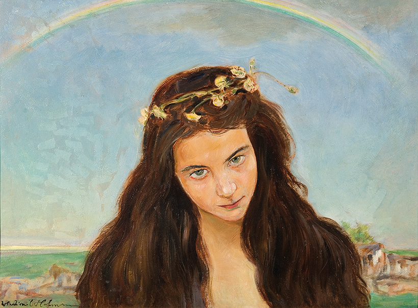 Wlastimil Hofman / Vlastimil Hofmann (Praga 1881 - Szklarska Poręba 1970) studiował w krakowskiej Szkole Sztuk Pięknych - początkowo pod kierunkiem Floriana Cynka, później także u Jana Stanisławskiego, Leona Wyczółkowskiego i Jacka Malczewskiego. W latach 1899-1902 uczył się jeszcze u Jeana Léona Gérôme’a w paryskiej École des Beaux-Arts. W czasie I wojny światowej przebywał w Pradze i w Paryżu; od 1920 stale mieszkał w Krakowie. Dużo wystawiał; należał do wielu stowarzyszeń twórczych - był współzałożycielem „Grupy Pięciu” (1905) i „Grupy Zero” (1908), członkiem Związku Artystów Czeskich „Manes”, a od 1911 członkiem Tow. Artystów Polskich „Sztuka”. W czasie II wojny światowej poprzez ZSRR i Turcję przedostał się do Jerozolimy, skąd w roku 1946 wrócił do Krakowa. Od roku 1947 stale mieszkał w Szklarskiej Porębie. Hofman malował przede wszystkim fantastyczno-symboliczne kompozycje o motywach ludowych oraz sceny rodzajowe, portrety i pejzaże. Jego obrazy mimo bliskich analogii i powiązań ze sztuką Malczewskiego odznaczają się zawsze indywidualnym charakterem, stylem i nastrojem.