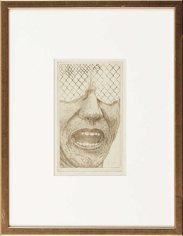 akwaforta, miękki werniks w kol. sepii, papier