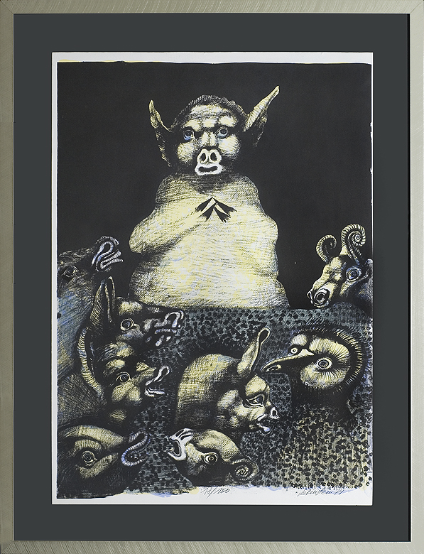 Jan Lebenstein (Brześć Litewski 1930 - Kraków 1999) w latach 1948-1954 studiował malarstwo w ASP w Warszawie pod kierunkiem prof. Eugeniusza Eibischa i Artura Nachta-Samborskiego. W 1955 wziął udział w wystawie w warszawskim Arsenale. Zaprzyjaźniony w czasie studiów z Mironem Białoszewskim, swą pierwszą wystawę indywidualną pokazał w 1956 w Teatrze na Tarczyńskiej. W 1959 zdobył Grand Prix de la Ville de Paris na I Biennale Młodych w Paryżu i w tym roku przeniósł się na stałe do Paryża. Po seriach "figur kreślonych" (na papierze milimetrowym) i "figur hieratycznych" z lat 1955-1958 maluje cykl "figur osiowych" (1958-1962), które wystawia w Paryżu i USA. Równolegle w 1960 zaczyna rysowane "karnety", rodzaj dziennika, który w przyszłości dostarczy motywów wykorzystanych w obrazach. W latach 1964-1965 maluje "Bestiarium", cykl fakturowych, archaizowanych stworów przypominających prehistoryczne wykopaliska. Bezpośrednio po nich wprowadza do swych obrazów postaci ludzkie i fantastyczne, odgrywające sceny ni to mitologiczne, ni to ze snu, często przesycone erotyką. W 1970 projektuje witraże dla Centre du Dialogue w Paryżu. W W 1971 otrzymuje obywatelstwo francuskie 1974 powstają gwasze inspirowane Folwarkiem zwierzęcym George'a Orwella. W latach 1976-1989 tworzy wyłącznie w technice gwaszu i pastelu, podejmując tematykę mitologiczną i zaczerpniętą z Biblii: cykle ilustracji do Księgi Hioba (wyd. 1979) i do Apokalipsy (wyd. 1986) w nowych przekładach Czesława Miłosza. W 1989 powraca do malarstwa olejnego (cykl "Pergamon"). Artysta otrzymał m. in. nagrodę Fundacji im. Alfreda Jurzykowskiego w 1976, Nagrodę Muzeum Archidiecezji Warszawskiej w 1985, Nagrodę im. Jana Cybisa w 1987.