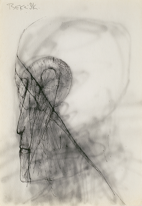 Zdzisław Beksiński (Sanok 24 II 1929 - Warszawa 21 II 2005) studiował w latach 1947-1952 na Wydziale Architektury Politechniki Krakowskiej. Był artystą samoukiem, który osiągnął niekwestionowaną pozycję w polskiej sztuce współczesnej, potwierdzoną obecnością jego prac na prestiżowych wystawach i w kolekcjach muzealnych. Początkowo zajmował się fotografią, którą interesował się od lat studenckich, po 1956 zyskując uznanie jako twórca fotogramów o estetyce opartej o efekty fakturowe. W latach 1958-1962 tworzył abstrakcyjne obrazy-reliefy o bogatej fakturze, głównie metalowe, będące odmianą malarstwa materii. Pod koniec tego okresu powstawały ażurowe formy o kształtach figur i pełnoplastyczne rzeźby w metalu. Kolejnym etapem jego twórczości były lata 1962-1974, kiedy poświęcał się głównie rysunkowi. W latach 60. rysował piórkiem i tuszem figuralne kompozycje odznaczające się karykaturalną deformacją postaci. Od końca lat 60. tworzył rysunki węglem i kredkami, będące monochromatyczną odmianą jego równoległej twórczości malarskiej. Od 1974 zajmował się niemal niepodzielnie malarstwem. Jego charakterystyczny styl bazował na perfekcji technicznej, której towarzyszyła niezwykłość wizji. Malował świat po katastrofie, naznaczony piętnem śmierci i rozpadu. Jego obrazy zaludniają postaci i stwory o ludzkich wprawdzie bądź zwierzęcych kształtach, lecz o cechach fantomów, automatów lub rozpadających się trucheł. Artysta nie nadawał swym obrazom i rysunkom tytułów (poza porządkującymi symbolami), akcentując w ten sposób swój brak zainteresowania dla literackiej strony przedstawień. Sam mówił, że malując całkowicie poddaje się wizji, „fotografuje“ ją. W ostatnich latach włączył do swego warsztatu artystycznego elektroniczne techniki generowania obrazu, które wykorzystywał do tworzenia komputerowych fotomontaży. Sztuka Beksińskiego, wielokrotnie wystawiana i omawiana, budzi skrajne emocje wśród znawców i publiczności.