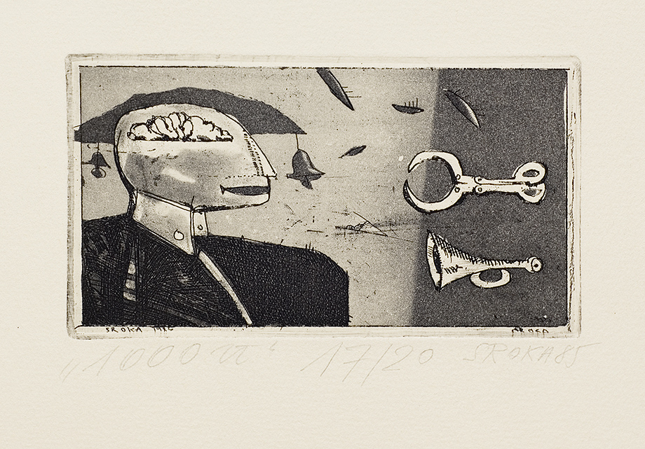 Jacek Sroka studiował w ASP w Krakowie w latach 1976-81. Do 1989 był pedagogiem na Wydziale Grafiki tej uczelni. Zajmuje się równolegle malarstwem i grafiką warsztatową w technikach metalowych, przeważnie barwną. Jako jeden z nielicznych artystów krakowskich, od lat 80. współtworzy obraz nurtu neoekspresjonistycznego w Polsce. Maluje w charakterystycznie uproszczony sposób, ostro definiując kolory i kształty, często przerysowując je w kierunku karykaturalnego traktowania postaci i sytuacji. Nie unika sarkazmu czy wręcz kpiny, jak w pracach o politycznym, antykomunistycznym podtekście. Jego obrazy odznaczają się rozmaitością ujęć przestrzennych. Uwagę zwraca zwłaszcza często przez artystę stosowany zabieg multiplikowania rzeczywistości w jednej kompozycji, polegający na wpisywaniu obrazu w obraz. Inne charakterystyczne cechy obrazów Sroki to dublowanie figur lub pokrywanie całej powierzchni malowidła „rastrem” powielonych, drobnych elementów.