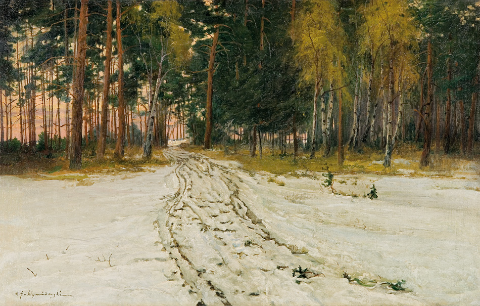 Michał Gorstkin Wywiórski (Warszawa 1861 - Berlin 1926) w latach 1883-1887 studiował w Monachium; w Akademii u profesorów Karla Raupa i Nikolausa Gysisa oraz równolegle w prywatnych pracowniach Józefa Brandta i Alfreda Wierusza-Kowalskiego. W 1884 debiutował na wystawie w krakowskim TPSP, swoje prace pokazywał też w Monachium, gdzie w 1894 na międzynarodowej wystawie w Glaspalast został wyróżniony medalem za obraz Z puszczy litewskiej. W 1895 przeniósł się do Berlina, zaproszony przez Wojciecha Kossaka i Juliana Fałata do pracy przy panoramie Berezyna (1895-1896). W Berlinie zamieszkał na dłużej, a następnie przebywał w Wielkopolsce i w Warszawie. Współpracował też z Janem Styką przy panoramie Bitwa pod Sybinem (1897), a w 1900 wspólnie z Kossakiem podróżował do Hiszpanii i Egiptu, aby wykonać szkice plenerowe do zamierzonych panoram Somosierra (nie zrealizowana) i Bitwa pod piramidami (1901). Wyjeżdżał także na Litwę, wyspę Sylt, do Norwegii, Szwecji, nad Morze Północne i Bałtyk, malował w Amsterdamie, na Krymie i Kaukazie. We wczesnej fazie twórczości, pod silnym wpływem Brandta i Wierusza-Kowalskiego, malował sceny myśliwskie i rodzajowe oraz obrazy z Tatarami, Kozakami czy Czerkiesami, które przyniosły mu powodzenie na monachijskim rynku sztuki. Z czasem naczelnym tematem jego malarstwa stał się czysty pejzaż, postrzegany i malowany wrażliwie i z upodobaniem.