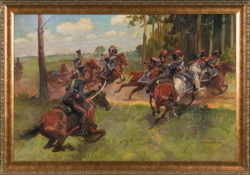 Antoni Trzeszczkowski – (1902–1977) to artysta, który niesłusznie pozostaje w cieniu bardziej znanych batalistów, mimo że jego twórczość dorównuje najlepszym przedstawicielom tego gatunku. Jego malarstwo cechuje niezwykła dynamika, precyzja rysunku oraz wyjątkowe wyczucie ruchu, zwłaszcza w przedstawieniach koni i bitewnych scen. W jego obrazach można dostrzec pasję i głęboką znajomość wojskowości, co sprawia, że są one nie tylko dziełami sztuki, ale także wartościowymi rekonstrukcjami historycznymi.