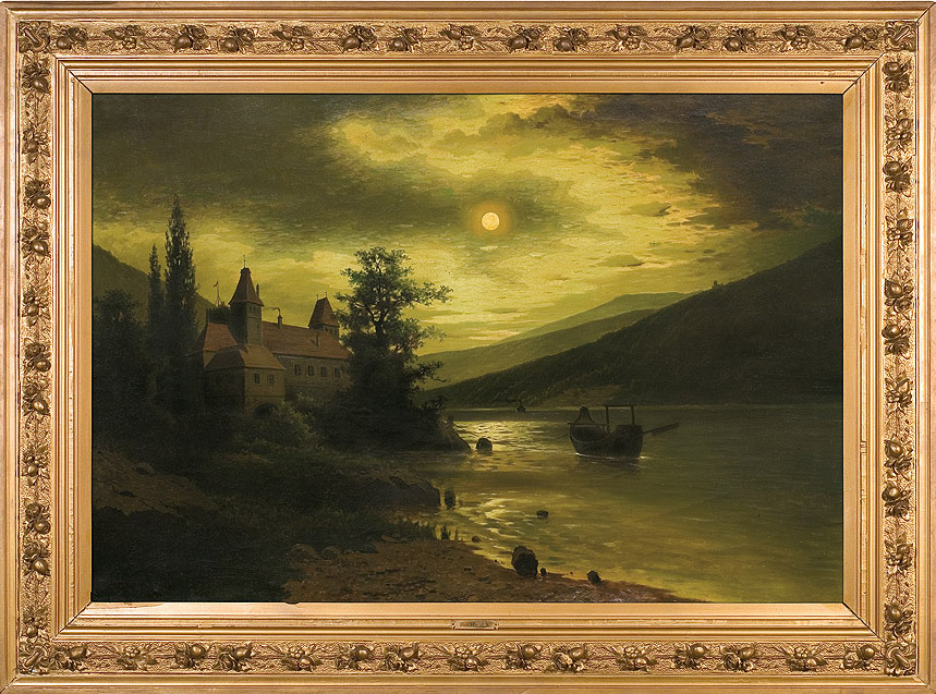 KRAJOBRAZ NOCNY Z ZAMKIEM NAD JEZIOREM