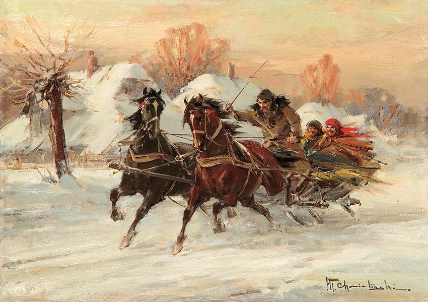 Władysław Chmieliński (Warszawa 1911 - Warszawa 1979) był malarzem związanym z Warszawą, gdzie stale mieszkał i pracował. W latach 1926-1931 studiował w warszawskiej Miejskiej Szkole Sztuk Zdobniczych i Malarstwa (dawna Klasa Rysunkowa). Wiodącym tematem jego obrazów były widoki miejskie, malowane olejno i akwarelą. W latach 1935-1938 stworzył cykl akwarel przedstawiających obiekty polskiej architektury; wśród nich, widoki Sandomierza, Krakowa, Kazimierza nad Wisłą, a także wnętrza zabytkowych kościołów czy pałaców, m.in. Zamku Królewskiego w Warszawie i Pałacu w Wilanowie. Malował także pejzaże i wiejskie sceny rodzajowe – kuligi, sanny, zaprzęgi, wesela, konie na tle krajobrazu. W latach 1967-1969 wyjeżdżał na dłuższe pobyty do Danii. W latach 1936-1939 artysta używał także pseudonimu „Władysław Stachowicz”.