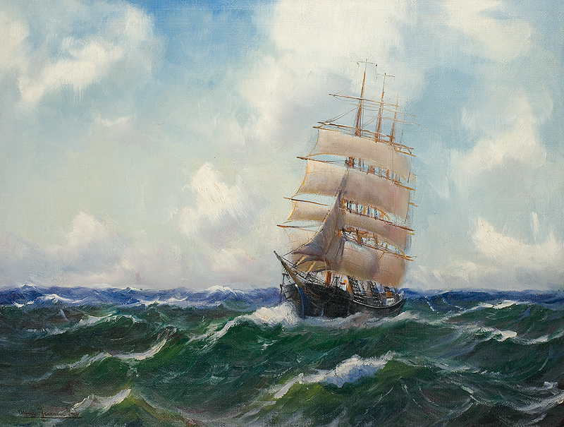Alfred Jensen – duński malarz marynista. Od czternastego roku życia pływał na różnych statkach, odbywając wiele dalekich podróży. W latach 1884–1885 kształcił się w Hamburgu u H.Leitnera, następnie u E.Neumanna oraz w Akademii Sztuk Pięknych w Cassel. W 1901 roku w Lyonie został odznaczony złotym medalem za obraz o tematyce marynistycznej. Temu tematowi pozostał wierny w całej późniejszej twórczości. Jego obrazy znajdują się w Kunsthalle w Hamburgu (zbiór 30 prac), w muzeach w Schwerinie, Kilonii, Altonie-Hamburgu, Gdańsku (Fregata, 1898), a także w prywatnych zbiorach u Vorwadta, Oetkera i innych.