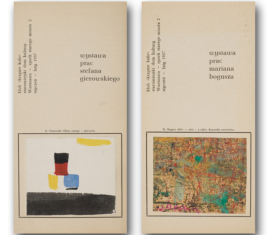 Wystawa prac Mariana Bogusza / Wystawa Prac Stefana Gierowskiego, klub „Krzywe Koło” staromiejski Dom Kultury, Warszawa styczeń-luty 1957