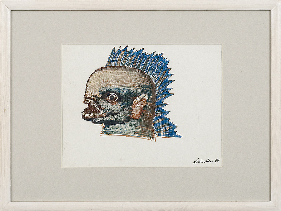 Jan Lebenstein (Brześć Litewski 1930 - Kraków 1999) w latach 1948-1954 studiował malarstwo w ASP w Warszawie pod kierunkiem prof. Eugeniusza Eibischa i Artura Nachta-Samborskiego. W 1955 wziął udział w wystawie w warszawskim Arsenale. Zaprzyjaźniony w czasie studiów z Mironem Białoszewskim, swą pierwszą wystawę indywidualną pokazał w 1956 w Teatrze na Tarczyńskiej. W 1959 zdobył Grand Prix de la Ville de Paris na I Biennale Młodych w Paryżu i w tym roku przeniósł się na stałe do Paryża. Po seriach "figur kreślonych" (na papierze milimetrowym) i "figur hieratycznych" z lat 1955-1958 maluje cykl "figur osiowych" (1958-1962), które wystawia w Paryżu i USA. Równolegle w 1960 zaczyna rysowane "karnety", rodzaj dziennika, który w przyszłości dostarczy motywów wykorzystanych w obrazach. W latach 1964-1965 maluje "Bestiarium", cykl fakturowych, archaizowanych stworów przypominających prehistoryczne wykopaliska. Bezpośrednio po nich wprowadza do swych obrazów postaci ludzkie i fantastyczne, odgrywające sceny ni to mitologiczne, ni to ze snu, często przesycone erotyką. W 1970 projektuje witraże dla Centre du Dialogue w Paryżu. W W 1971 otrzymuje obywatelstwo francuskie 1974 powstają gwasze inspirowane Folwarkiem zwierzęcym George'a Orwella. W latach 1976-1989 tworzy wyłącznie w technice gwaszu i pastelu, podejmując tematykę mitologiczną i zaczerpniętą z Biblii: cykle ilustracji do Księgi Hioba (wyd. 1979) i do Apokalipsy (wyd. 1986) w nowych przekładach Czesława Miłosza. W 1989 powraca do malarstwa olejnego (cykl "Pergamon"). Artysta otrzymał m. in. nagrodę Fundacji im. Alfreda Jurzykowskiego w 1976, Nagrodę Muzeum Archidiecezji Warszawskiej w 1985, Nagrodę im. Jana Cybisa w 1987.