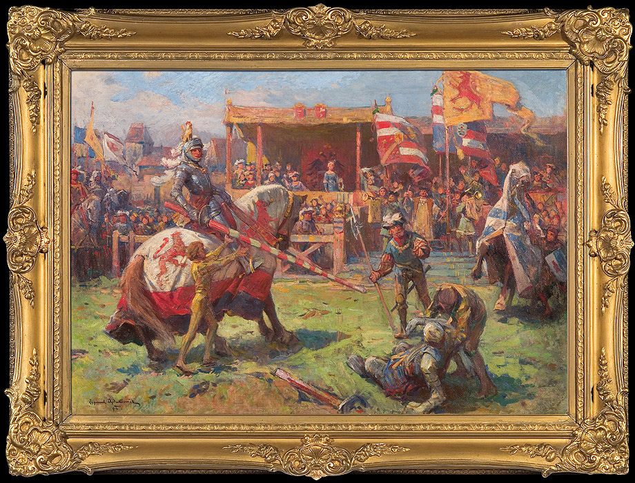 Zygmunt Ajdukiewicz (Witkowice pod Tarnobrzegiem 1861 - Wiedeń 1917) naukę malarstwa rozpoczął w Szkole Sztuk Pięknych w Krakowie. Następnie studiował w Akademii Sztuk Pięknych w Wiedniu (1880-1882) oraz w Akademii w Monachium (1883-1885), m.in. pod kierunkiem Johanna C. Hertericha. Po studiach stale mieszkał w Wiedniu, skąd w roku 1893 wyjeżdżał do Paryża. Podobnie jak jego stryjeczny brat, Tadeusz Ajdukiewicz, był malarzem sfer dworskich i arystokratycznych. Malował portrety, oraz obrazy historyczne i rodzajowe; sceny wojskowe, jarmarczne czy myśliwskie, w których odbijały się „pewne historyczno-stepowe zwyczaje z kresów dawnej Polski”. Przez współczesnego recenzenta określony jako „koniarz - pejzażysta”, miał „dużo pomysłów szerokich i nader wdzięcznych”. Dla pałacu cesarskiego w Wiedniu wykonał serię obrazów ilustrujących historię Złotego Runa, a w 1891 namalował cykl 12 obrazów ze scenami z życia Tadeusza Kościuszki (w 1892 wydany jako album przez F. Bondy’ego w Wiedniu). Zajmował się także ilustracją książkową; m.in. ilustrował Potop Sienkiewicza. Wystawiał od 1882; w TPSP w Krakowie, w TZSP i Salonie Krywulta w Warszawie, we Lwowie, w Wiedniu, Berlinie, Monachium, Pradze. Jego obrazy wyróżniane były medalami, m.in. w 1891 wielkim złotym medalem na wystawie w Wiedniu i złotym medalem II klasy w Berlinie, w !898 złotym medalem II klasy w Wiedniu, w 1894 medalem srebrnym we Lwowie. Dziś prace artysty znajdują się w zbiorach licznych muzeów polskich, m.in. w Muzeach Narodowych Warszawy, Krakowa i Wrocławia, w Państwowych Zbiorach Sztuki na Wawelu czy w Muzeum Górnośląskim w Bytomiu.