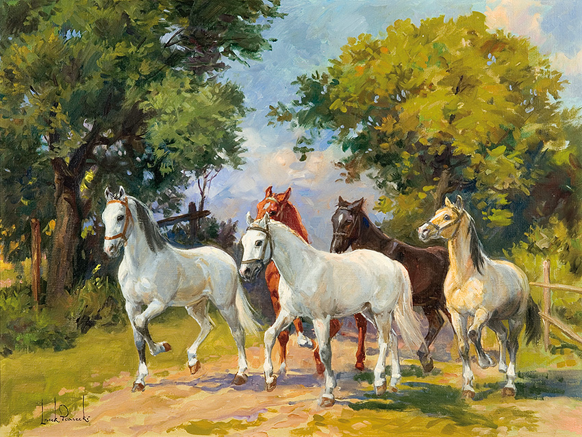 Leszek Piasecki - malować uczył się początkowo we Lwowie - w Szkole Przemysłu Artystycznego i prywatnie u Z. Rozwadowskiego i S. Kaczor-Batowskiego. Następnie, w latach1946-1952 kształcił się w ASP w Krakowie pod kierunkiem F. Pautscha, I. Pieńkowskiego, J. Holińskiego i J. Fedkowicza. Przyjaźnił się z Jerzym Kossakiem, bywał w jego pracowni i czasem wykonywał tzw. „podmalówki“ do obrazów. Później mieszkał w Katowicach, a od roku 1974 stale w Wiedniu, czynnie uczestnicząc w życiu tamtejszej Polonii. Był członkiem, a w latach 1985-1986 prezesem Związku Polaków w Austrii „Strzecha“, pisywał artykuły do pisma „Głos Polonii“, współpracował z Muzeum Polskim w Rapperswilu. Był autorem dioramy przedstawiającej Bitwę pod Wiedniem (2 x 10 m) Malował portrety, ale przede wszystkim ulubione sceny batalistyczne, konie, polowania. Z racji tej tematyki nazywany był czasem „Kossakiem z Wiednia“. Wystawiał w warszawskiej Zachęcie, w Krakowie, w Moskwie, Odessie i wielokrotnie w Wiedniu.