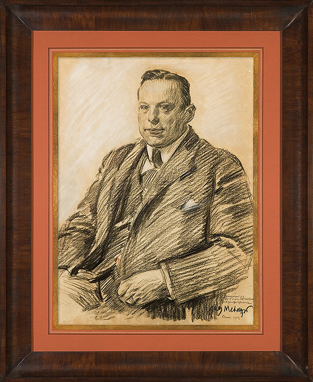 Józef Mehoffer (Ropczyce 1869-Wadowice 1946) - malarz, grafik, scenograf i pedagog; obok Stanisława Wyspiańskiego był najwybitniejszym polskim twórcą witraży i polichromii. Uczeń Jana Matejki i uczelni paryskich - Ecolé des Beaux Arts i Accadémie Colarossi - swą drogę twórczą rozpoczął w latach 1889-1891 od pracy nad polichromią Kościoła Mariackiego w Krakowie (pod kierunkiem Matejki). W roku 1895 otrzymał I nagrodę na międzynarodowym konkursie na witraże do kolegiaty we Fryburgu w Szwajcarii (ich realizacja trwała aż do 1934). W latach następnych otrzymywał różne inne zamówienia na witraże i polichromie, m.in. dla katedry na Wawelu i w Płocku, katedry Ormiańskiej we Lwowie, dla kościołów w Opawie, Onnes w Szwajcarii, w Jutrosinie, we Włocławku czy Przemyślu (nie wszystkie zrealizowane). Był wybitnym reprezentantem sztuki secesji. Tworzył dekoracyjnie traktowane portrety, w tym autoportrety i portrety żony, a także obrazy o zabarwieniu rodzajowym, które w latach 1895-1917 zyskiwały wymowę kompozycji symbolicznych. Malował także pejzaże łączące secesyjną dekoracyjność ze zdobyczami impresjonizmu. Z mistrzowską biegłością posługiwał się różnymi technikami - olejem, temperą, akwarelą i gwaszem - zajmował się także grafiką. Ostatnia wielka wystawa dzieł artysty, zatytułowana Opus magnum, odbyła się w roku 2000 w Muzeum Narodowym w Krakowie.