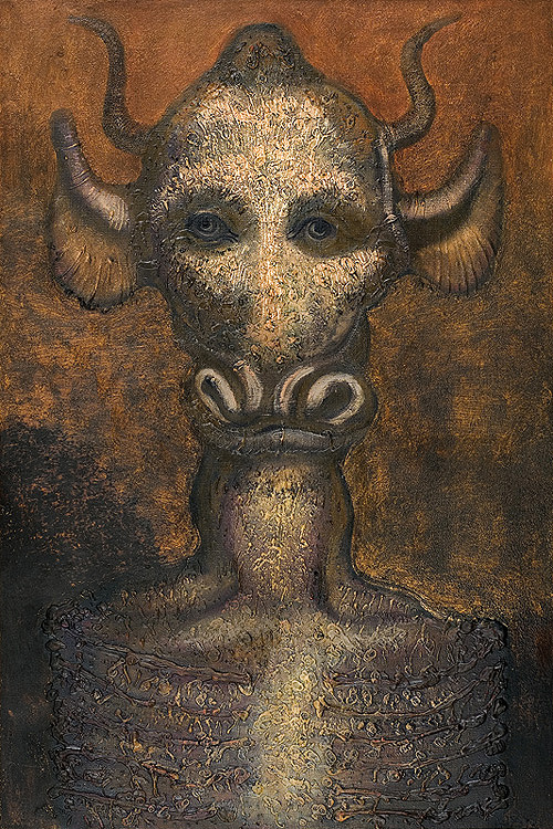Jan Lebenstein (Brześć Litewski 1930 - Kraków 1999) w latach 1948-1954 studiował malarstwo w ASP w Warszawie pod kierunkiem prof. Eugeniusza Eibischa i Artura Nachta-Samborskiego. W 1955 wziął udział w wystawie w warszawskim Arsenale. Zaprzyjaźniony w czasie studiów z Mironem Białoszewskim, swą pierwszą wystawę indywidualną pokazał w 1956 w Teatrze na Tarczyńskiej. W 1959 zdobył Grand Prix de la Ville de Paris na I Biennale Młodych w Paryżu i w tym roku przeniósł się na stałe do Paryża. Po seriach "figur kreślonych" (na papierze milimetrowym) i "figur hieratycznych" z lat 1955-1958 maluje cykl "figur osiowych" (1958-1962), które wystawia w Paryżu i USA. Równolegle w 1960 zaczyna rysowane "karnety", rodzaj dziennika, który w przyszłości dostarczy motywów wykorzystanych w obrazach. W latach 1964-1965 maluje "Bestiarium", cykl fakturowych, archaizowanych stworów przypominających prehistoryczne wykopaliska. Bezpośrednio po nich wprowadza do swych obrazów postaci ludzkie i fantastyczne, odgrywające sceny ni to mitologiczne, ni to ze snu, często przesycone erotyką. W 1970 projektuje witraże dla Centre du Dialogue w Paryżu. W W 1971 otrzymuje obywatelstwo francuskie 1974 powstają gwasze inspirowane Folwarkiem zwierzęcym George'a Orwella. W latach 1976-1989 tworzy wyłącznie w technice gwaszu i pastelu, podejmując tematykę mitologiczną i zaczerpniętą z Biblii: cykle ilustracji do Księgi Hioba (wyd. 1979) i do Apokalipsy (wyd. 1986) w nowych przekładach Czesława Miłosza. W 1989 powraca do malarstwa olejnego (cykl "Pergamon"). Artysta otrzymał m. in. nagrodę Fundacji im. Alfreda Jurzykowskiego w 1976, Nagrodę Muzeum Archidiecezji Warszawskiej w 1985, Nagrodę im. Jana Cybisa w 1987.
