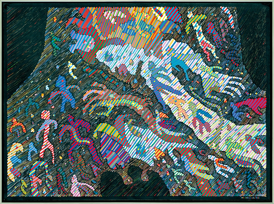 Jan Dobkowski (Łomża 1942, mieszka w Warszawie) studiował w latach 1962-1968 na Wydziale Malarstwa warszawskiej ASP pod kierunkiem prof. Juliusza Studnickiego i Jana Cybisa. Będąc jeszcze na studiach, w 1966, utworzył duet artystyczny, w którym jego partnerem był Jerzy (Jurry) Zieliński. Ich pierwsza wspólna wystawa pn. Neo-Neo-Neo odbyła się w Warszawie w 1967. Wystawiali wspólnie do 1970. W 1968 powstały pierwsze zielono-czerwone obrazy Dobkowskiego (używającego w tym czasie pseudonimu Dobson). W pracach tych, operujących giętkimi, falistymi liniami, w których upatrywano wpływów secesji, artysta używał sposobów rodem z op-artu dla wywołania złudzeń optycznych (wirowanie, mżenie, pozorny ruch form). Równolegle z obrazami tworzył też formy z płyt i folii do montowania w przestrzeni. Złoty medal na Sympozjum Złotego Grona w Zielonej Górze w 1971 i blisko roczny pobyt w USA na stypendium Fundacji Kościuszkowskiej w 1972 to kolejne etapy pełnej sukcesów kariery malarza. Wyraźną zmianę nastroju i wymowy jego prac przyniosły wydarzenia 1980-1981 roku, zwłaszcza wprowadzenie stanu wojennego. Monochromatyczne, ciemne płótna znaczył wtedy nikłymi, wiotkimi liniami rysunku. Najczęstszym motywem były patriotyczne i religijne symbole, dopowiadane tytułami nawiązującymi do realiów czasu. Kolejna radykalna zmiana nastąpiła ok. 1990. Symbolicznym zwiastunem nowego okresu stał się olbrzymi, radosny, eksplodujący bogactwem barw, kształtów i ruchu obraz ...a życie sobie płynie... (394 x 588 cm) z 1990-1991. Podobne cechy formalne charakteryzują twórczość artysty w całej dekadzie lat 90. Równolegle z malarstwem Dobkowski pracuje nad rysunkiem, będącym bardzo ważnym dopełnieniem jego twórczości.