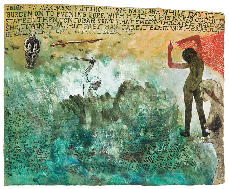 Zbigniew Makowski (Warszawa 31 I 1930 - Warszawa 19 VIII 2019) studiował w ASP w Warszawie w latach 1950-1956, dyplom uzyskał w pracowni Kazimierza Tomorowicza. Początkowo skłaniał się ku surrealizmowi - podczas pobytu w Paryżu w 1962 zetknął się z André Bretonem i międzynarodowym ruchem Phases. Jednak decydujący wpływ na wyraz jego sztuki wywarły pozamalarskie zainteresowania, jakim się oddaje. Jest literatem, poetą, erudytą, zwłaszcza zaś znawcą szerokiego spektrum filozofii i wiedzy tajemnej wielu kultur. Znawstwo to wykorzystuje w swoich pracach malarskich, rysunkowych, a także w unikatowych książkach, które własnoręcznie wykonuje na specjalnie preparowanych papierach. W swych pracach nawarstwia symbole, cytaty i znaczenia w nieczytelny, zdawałoby się, chaos. Wypada jednak wierzyć krytykom, którzy twierdzą, iż prace Makowskiego otwierają przed cierpliwym i intelektualnie przygotowanym „czytelnikiem“ świat swoistej narracji. Sam artysta zaś zwraca uwagę na „permutacyjną“ strukturę swych prac, w których rozmaite cytaty i odniesienia kulturowe przeplatają się z jego prywatną ikonografią. Tak czy inaczej, z pewnością w pracach Makowskiego da się wyróżnić pewien „alfabet“ wizualno-symboliczny, którego elementy pojawiają się w nich stale w różnych konfiguracjach. Należą doń np. takie wizerunki, jak klucz, drabina, studnia, mandala, kielich itp. Otaczają je napisy, często łacińskie, a także pojedyncze cyfry, litery, ornamenty. Określił je ktoś jako rebusy o wielkiej urodzie, które można odczytywać, można też kontemplować. Od roku 1982 artysta przestał wystawiać, ale nie tworzyć. Powstają wówczas prace będące rodzajem nowoczesnego notatnika, rozpoczętego jeszcze w latach 60., do którego artysta powraca z nowymi przemyśleniami. Artysta jest laureatem wielu nagród, m.in. Nagrody Krytyki Artystycznej im. Norwida (1973) i Nagrody im. Jana Cybisa (1992). Jego wielka kompozycja "Mirabilitas secundum diversos modos exire potest a rebus" (1973-1980) zdobi genewską siedzibę ONZ jako dar rządu polskiego.