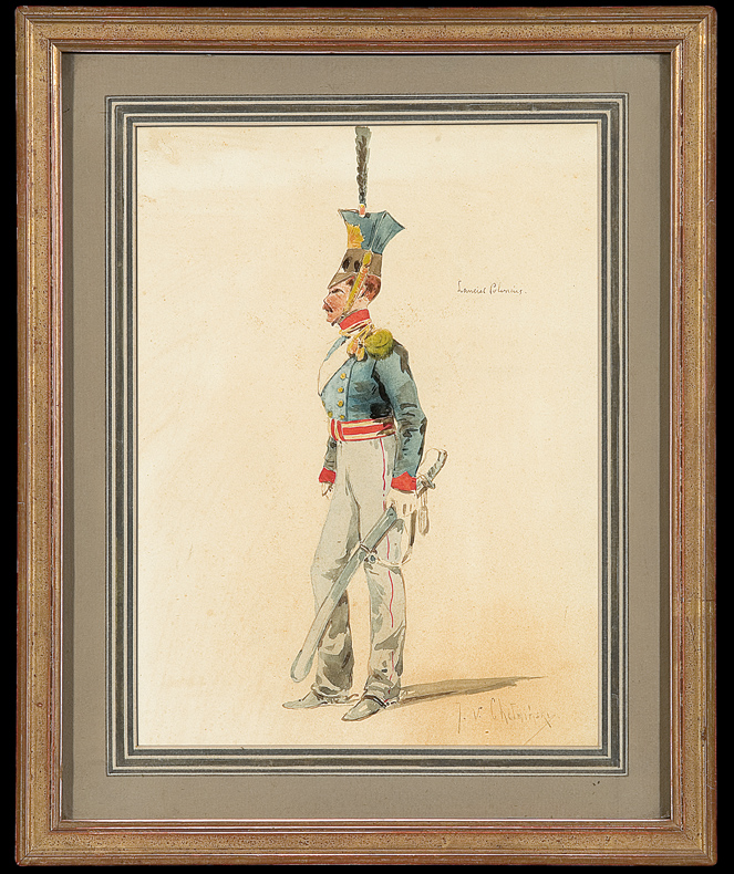 Jan Chełmiński (Brzustów k. Opoczna 1851 – Nowy Jork 1925) popularny malarz z kręgu „polskich monachijczyków“, naukę rozpoczął u Juliusza Kossaka, a następnie kształcił się w warszawskiej Klasie Rysunkowej oraz w Monachium - w Akademii u Alexandra Strähubera i Alexandra Wagnera (1873-1875) i prywatnych pracowniach Józefa Brandta (1875) i batalisty Franza Adama (1876). Po studiach przebywał już stale za granicą - w Monachium, Londynie (lata 1882, 1888-1899), Paryżu (1899), jeździł do Petersburga (1889) i Nowego Jorku (1884), gdzie później, około 1915 zamieszkał na stałe. Nie zerwał jednak kontaktów z krajem, a swoje prace często przesyłał na warszawskie wystawy. Jego obrazy cieszyły się ogromnym powodzeniem. Malował przede wszystkim sceny wojskowe i batalistycznie, najchętniej z czasów Księstwa Warszawskiego i wojen napoleońskich, a także obrazy rodzajowe i epizody z polowań. Zajmował się ilustracją książkową; m.in. ilustrował tom myśliwskich opowiadań Theodora Roosevelta. Był kolekcjonerem dawnej broni i wybitnym znawcą żołnierskiego umundurowania. Wiele obrazów artysty wciąż znajduje się za granicą - w Anglii, Niemczech czy Stanach Zjednoczonych. Nieliczne z nich pojawiają się w sprzedaży antykwarycznej, stale budząc żywe zainteresowanie zbieraczy.