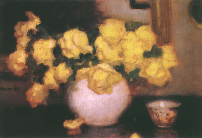 Alfons Karpiński (Rozwadów, dziś dzielnica Stalowej Woli 1875 - Kraków 1961) w latach 1891-1899 studiował w krakowskiej Szkole Sztuk Pięknych pod kierunkiem Floriana Cynka, Izydora Jabłońskiego, Władysława Łuszczkiewicza i Leona Wyczółkowskiego, a następnie kształcił się jeszcze u Antona Ažbégo w Monachium (1903), u Kazimierza Pochwalskiego w Wiedniu, a od 1907 także w Paryżu. Podróżował do Włoch i Londynu. Stale mieszkał w Krakowie; związany z tamtejszym środowiskiem skupionym wokół „Zielonego Balonika” projektował dekoracje do przedstawień kabaretu. Należał do Tow. Artystów Polskich „Sztuka”, grupy „Zero”, był członkiem wiedeńskiego stowarzyszenia „Secesja” i krakowskiego TPSP. Uczestniczył w wielu wystawach w kraju i za granicą. W czasie I wojny światowej służył w armii austriackiej. Na bogatą twórczość artysty składają się wczesne sceny rodzajowe z podkrakowskiej wsi, pejzaże i portrety, wśród nich zwłaszcza portrety kobiece, które przyniosły mu szczególną popularność. Z czasem głównym – obok portretu – tematem jego obrazów stały się martwe natury z kwiatami, dekoracyjne kompozycje o stonowanej gamie barwnej. Artysta zajmował się także grafiką i ilustratorstwem.