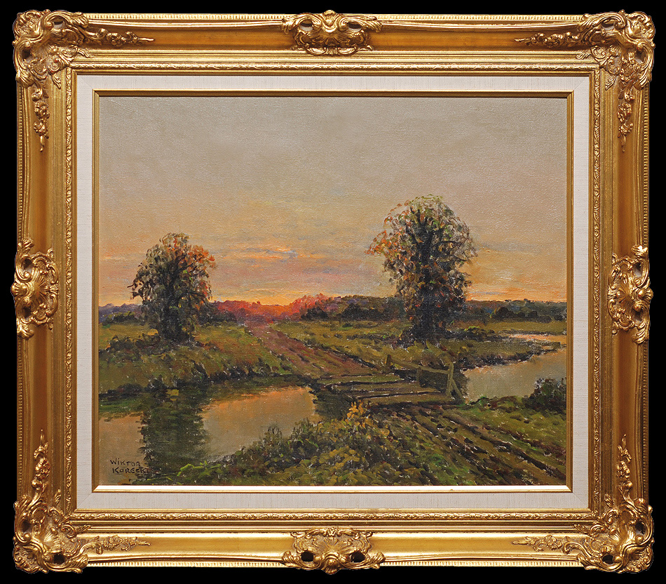 Wiktor Korecki (Kamieniec Podolski 1890 - Komorów k. Warszawy 1980) - malarz pejzażysta - gimnazjum ukończył w Kijowie, tam też studiował w Szkole Rysunkowej Aleksandra Muraszki. Po studiach wrócił do Kamieńca Podolskiego, skąd w roku 1921 wyjechał do Warszawy. Tu miał pracownię na rogu ulic Tamki i Cichej. Niestety zgromadzone tam obrazy spłonęły w czasie powstania 1944 roku. Po powstaniu artysta przebywał w obozie w Pruszkowie skąd trafił do obozu pracy w Lipsku. Do kraju powrócił w roku 1946 i zamieszkał w Komorowie pod Warszawą, a później w Milanówku. Jego nastrojowe krajobrazy emanujące spokojem i pogodą cieszyły się zawsze dużą popularnością. Korecki najczęściej malował pejzaże zimowe z motywem leśnej drogi i strumienia wijącego się wśród śniegów, a obok nich także wiosenne, letnie czy jesienne widoki z Mazowsza.