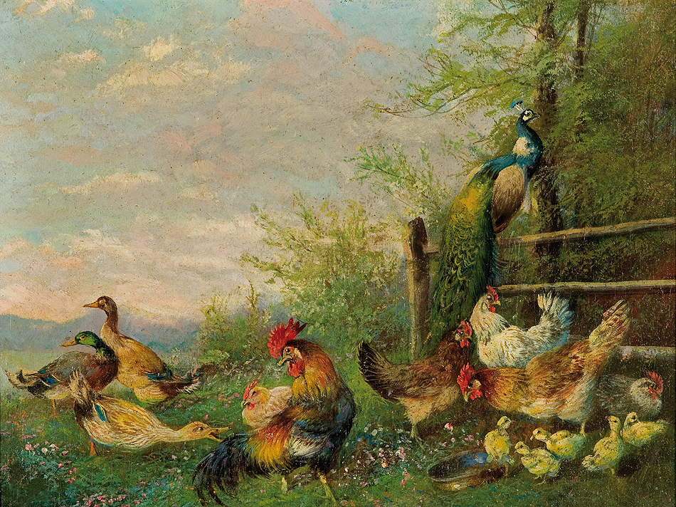 PTACTWO NA PODWÓRKU. PAW, KACZKI, KOGUT, KURY, KU