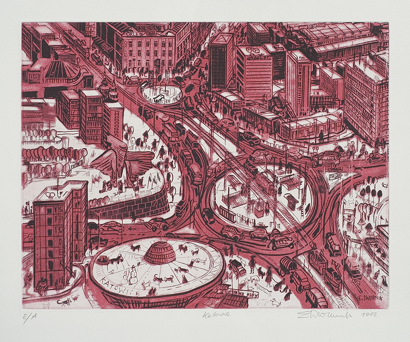 Edward Dwurnik (Radzymin 19 IV 1943 - Warszawa 28 X 2018) studiował malarstwo w ASP w Warszawie (1963-1970), jednak jako swego „mistrza“ wymienia Nikifora. Jego to prace, zobaczone po raz pierwszy w 1965, zainspirowały ówczesnego studenta III roku do narysowania pierwszych prac z cyklu „Podróże autostopem“, które kontynuował w nastepnych latach. W 1972-1978 powstawał cykl „Sportowcy“, w którym portretowane były, dodajmy - kąśliwie, typowe postaci z lat 70. Równolegle od 1975 powstawał cykl „Robotnicy“, który kulminował w okresie „Solidarności“ 1980-1981. Za prace z tego cyklu Dwurnik otrzymał w 1981 Nagrodę Krytyki Artystycznej im. Cypriana Kamila Norwida, natomiast za obrazy z cyklu „Warszawa“ (1981), proroczo zapowiadające stan wojenny - Nagrodę Kulturalną „Solidarności“ podziemnej w 1983. W latach 80. malarstwo Dwurnika przybrało wyraz ekspresyjny i dramatyczny. Powstające w tej dekadzie obrazy miały niejednokrotnie wymowę polityczną, przybierały też kostium historyczny, tak czy inaczej odnoszący się do współczesnych spraw i realiów. Cykl „Droga na Wschód“ (1989-91) upamiętniał ofiary stalinizmu, natomiast cykl „Od Grudnia do Czerwca“ (1990-94) - ofiary stanu wojennego. Zarówno ideowe, jak i czysto malarskie walory tych prac przyniosły artyście ogromne uznanie, zarówno w kraju jak i za granicą. Jego wyrazem była prestiżowa nagroda Fundacji Coutts & Co w Zurychu (1992). W latach 90. powstają cykle będące kontynuacją „Podróży autostopem“: „Niebieskie miasta“ (od 1993) i „Diagonale“ (od 1996), jak również kompozycje nowego typu, jak widoki morskie (cykl „Błękitne“, 1992-93) czy cykl „Wyliczanka“ (1996-99). Artysta wiele wystawia, miał ok. 100 wystaw indywidualnych w Polsce i za granicą, brał też udział w licznych wystawach i festiwalach krajowych i międzynarodowych, m.in.: X Biennale Sztuki Współczesnej, Menton 1974, Documenta 7, Kassel 1982, 5th Biennale, Sydney 1985, XIX Biennale Sztuki, Sao Paulo 1987; Olimpiada Sztuki, Seul 1988. Równolegle z malarstwem uprawiał rysunek, collage, grafikę warsztatową (litografia, techniki metalowe, kserografia, stemple) i użytkową (ilustracja, plakaty do własnych wystaw indywidualnych).