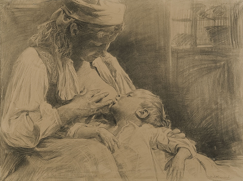 Wincenty Wodzinowski studia malarskie rozpoczął w latach 1880 - 1881 w warszawskiej Klasie Rysunkowej pod kierunkiem W. Gersona; następnie, w latach 1881 - 1889 studiował w Szkole Sztuk Pięknych w Krakowie, m.in. u W.Łuszczkiewicza, L.Loefflera F.Cynka i J.Matejki; a w latach 1889-92 w Akademii Sztuk Pięknych w Monachium u A.Wagnera. W roku 1896 zamieszkał w Swoszowicach k. Krakowa i został profesorem malarstwa na Wyższych Kursach dla Kobiet przy krakowskim Muzeum Techniczno-Przemysłowym. Zaprzyjaźniony z I.Korwin-Milewskim, znanym kolekcjonerem i mecenasem sztuki, w latach 1892 - 1907 pracował głównie na jego zamówienie. We wcześniejszym okresie malował portrety, poźniej przede wszystkim typy ludowe i sceny rodzajowe z życia podkrakowskiej wsi.