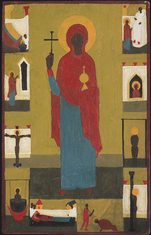 Jerzy Nowosielski (Kraków 1923 - Kraków 2011) w 1940 zaczął studia w Kunstgewerbeschule w Krakowie. W 1942 przebywał przez niecały rok w Ławrze św. Jana Chrzciciela pod Lwowem. Studiował tam sztukę malowania i historię ikon. Po powrocie do Krakowa w 1943 nawiązał ponowne kontakty z kręgiem przyszłej Grupy Krakowskiej. Po wojnie kontynuował studia w ASP w Krakowie pod kierunkiem prof. Eugeniusza Eibischa (1945-1947). Na I Wystawie Sztuki Nowoczesnej w Krakowie w 1948/49 pokazał obrazy utrzymane w nurcie abstrakcji geometrycznej. W latach socrealizmu nie wystawiał, zajmując się w tym czasie scenografią oraz malowaniem cerkwi i kościołów. W 1955 w Łodzi zaprezentował swą pierwszą wystawę indywidualną, w 1956 wziął udział w XXVIII Biennale w Wenecji. W latach 1957-1962 był pedagogiem w Państwowej Wyższej Szkole Sztuk Plastycznych w Łodzi, następnie w Akademii krakowskiej, gdzie wykładał na Wydziale Malarstwa do przejścia na emeryturę w 1993. W drugiej połowie lat 50. osiągnął charakterystyczny styl aktów, pejzaży i scen figuralnych we wnętrzach, który zawdzięczał swej fascynacji ikoną i doświadczeniom z malarstwem sakralnym. W 1976 podjął na nowo realizacje monumentalne, wykonując m.in. malowidła ścienne, stacje Drogi Krzyżowej i projekty witraży w kościele Opatrzności Bożej w Wesołej pod Warszawą (1976-1979). Artysta powszechnie uznawany był za autorytet w dziedzinie sztuki zakorzenionej w wartościach duchowych.