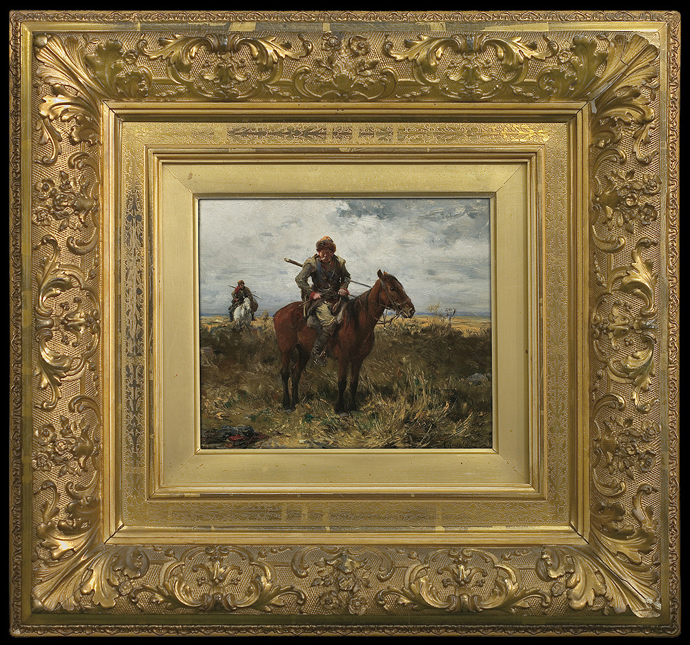 Alfred Wierusz-Kowalski (Suwałki 1849 – Monachium 1915) - jeden z najwybitniejszych polskich malarzy tzw. szkoły monachijskiej był, obok Józefa Brandta i Władysława Czachórskiego, także najpopularniejszym z polskich artystów osiadłych i stale działających w Monachium. Zamieszkał tam w roku 1873, już po studiach w Warszawie i w Dreźnie. Przez rok uczył się jeszcze w monachijskiej Akademii Sztuk Pięknych pod kierunkiem Alexandra Wagnera, a następnie przeniósł się do prywatnej pracowni Brandta. Uznanie krytyki i publiczności zdobył wcześnie; jego obrazy, odznaczane medalami na wystawach były rozchwytywane przez kolekcjonerów i niemieckich handlarzy. W roku 1890 został honorowym profesorem Akademii monachijskiej. Malował sceny rodzajowe i rodzajowo-historyczne z motywami jeźdźców, rycerzy, myśliwych, koni, wilków i śniegów. Po podróży do Afryki w roku 1903 podejmował też tematy orientalne. W polskich zbiorach muzealnych znalazło się stosunkowo niewiele prac artysty – jego obrazy sprzedawane głównie na rynku niemieckim w większej liczbie trafiały do kolekcji prywatnych, głównie w Niemczech i Stanach Zjednoczonych. Obecne często pojawiają się i na polskim rynku sztuki, zawsze budząc zainteresowanie kolekcjonerów.