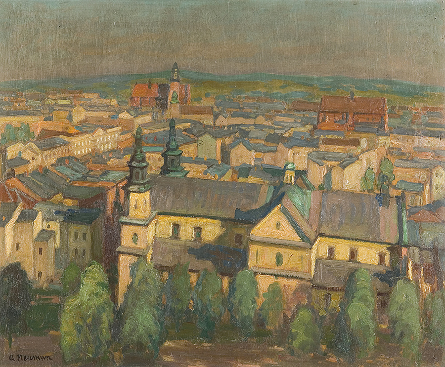 Abraham Neuman (Neumann) – malarz i grafik; w 1891 przyjechał do Warszawy i uczył się w Szkole Rysunkowej, utrzymując się z malowania portretów wg fotografii. W 1897 rozpoczął studia w krakowskiej Szkole Sztuk Pięknych pod kierunkiem Jacka Malczewskiego. W 1900 wyjechał do Paryża, uczył się w Académie Julian i kopiował obrazy w Luwrze. Zwiedził Holandię, Belgię, Anglię i Niemcy. Po powrocie do Krakowa w latach 1901-1902 kontynuował naukę w Akademii u Leona Wyczółkowskiego i Jana Stanisławskiego. Po studiach zamieszkał w Krakowie, skąd wyjeżdżał na plenery w Tatry. Później mieszkał też w Zakopanem, Nowym Targu i w Warszawie. W czasie I wojny światowej przebywał w Wiedniu. Około 1918 wyjechał na trzy lata do Stanów Zjednoczonych. Podróżował też po Francji, kilka lat spędził w Bretanii, był w Anglii, Holandii, Belgii, odwiedził Berlin, Wiedeń, Monachium, jeździł do Palestyny. W latach 1925-1927 wykładał w jerozolimskiej Szkole Sztuk Pięknych i Przemysły Artystycznego „Bazalel”. Swoje obrazy prezentował na wielu wystawach, m.in. w Krakowie, Warszawie, Łodzi, Drohobyczu i we Lwowie. Wystawiał też za granicą – w Paryżu, Wiedniu i w wielokrotnie w Niemczech. Malował przede wszystkim pejzaże z okolic podkrakowskich, z Tatr i Zakopanego, z Kazimierza, Warszawy, ze swych podróży po Francji (Bretania) i z Palestyny. Po 1911 malował także architekturę, martwe natury i wnętrza, a w latach dwudziestych portrety i kompozycje figuralne. Zajmował się grafiką. Od 1941 przebywał w krakowskim getcie; zginął podczas jego ewakuacji.