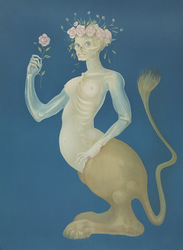 Leonor Fini, z pochodzenia Argentynka, niemal całe życie spędziła we Francji. Nie ukończyła żadnej szkoły artystycznej. W młodości fascynowała się twórczością prerafaelitów, Aubreya Beardsleya i Gustava Klimta. Jej pierwsza wystawa w Paryżu w 1935 zainteresowała surrealistów, poznała Paula Eluarda, Maxa Ernsta, René Magritte’a i Victora Braunera. Odtąd uczestniczyła w niektórych wystawach ruchu surrealistycznego. Interesowała ją biologiczna wegetacja, rytmy przyrody, przemijanie, dla których znajdowała symboliczny wyraz w pracach z późnych lat 40. Od początku aktualnym wątkiem jej twórczości, który od lat 60. zawładnął nią niemal niepodzielnie, był obsesyjny erotyzm, symbolizowany zwłaszcza przez zmysłowe koty-sfinksy. Kocie twarze i sylwetki miały też postaci malowanych przez nią kobiet, nimf, bohaterek mrocznych i wyrafinowanych dramatów. Ważnym wątkiem jej twórczości były portrety o zamglonym, sennym wyrazie. Była żoną Konstantego Jeleńskiego (1922-1987).