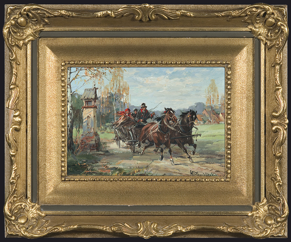 Władysław Chmieliński (Warszawa 1911 - Warszawa 1979) był malarzem związanym z Warszawą, gdzie stale mieszkał i pracował. W latach 1926-1931 studiował w warszawskiej Miejskiej Szkole Sztuk Zdobniczych i Malarstwa (dawna Klasa Rysunkowa). Wiodącym tematem jego obrazów były widoki miejskie, malowane olejno i akwarelą. W latach 1935-1938 stworzył cykl akwarel przedstawiających obiekty polskiej architektury; wśród nich, widoki Sandomierza, Krakowa, Kazimierza nad Wisłą, a także wnętrza zabytkowych kościołów czy pałaców, m.in. Zamku Królewskiego w Warszawie i Pałacu w Wilanowie. Malował także pejzaże i wiejskie sceny rodzajowe – kuligi, sanny, zaprzęgi, wesela, konie na tle krajobrazu. W latach 1967-1969 wyjeżdżał na dłuższe pobyty do Danii. W latach 1936-1939 artysta używał także pseudonimu „Władysław Stachowicz”.