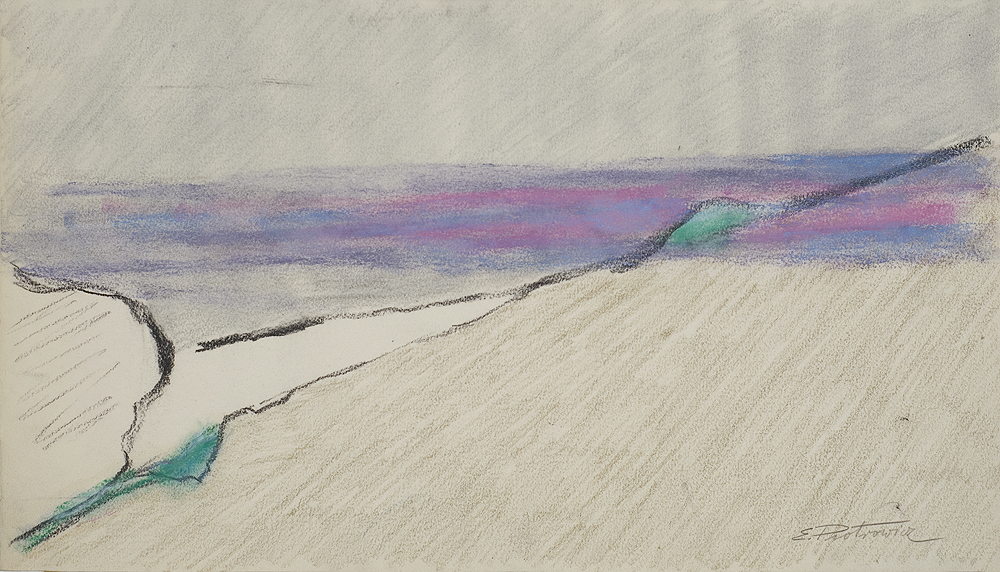 Edmund Piotrowicz (7 VIII 1915 Chersoń, Rosja - 1 II 1991 Warszawa) studiował w ASP w Warszawie (1945-1950, dyplom 1953). Pracował jako pedagog w Państwowym Liceum Technik Teatralnych w Warszawie (1951-1965, dyrektor 1964-1965) oraz na Wydziale Sztuk Pięknych Uniwersytetu Mikołaja Kopernika w Toruniu (od 1962, kierownik Katedry, następnie Zakładu Grafiki, profesor 1973). W latach 1960-1972 regularnie wystawiał na Biennale (od 1966 Międzynarodowym) Grafiki w Krakowie. Brał udział w licznych innych wystawach zbiorowych w kraju i za granicą, miał też wiele wystaw indywidualnych. Działał w ZPAP, był członkiem Stowarzyszenia Marynistów Polskich (od 1968). Laureat Nagrody Ministra Handlu Zagranicznego za twórczość marynistyczną w 1974. Uprawiał grafikę warsztatową (techniki metalowe, głównie sucha igła) i malarstwo. Znany był szczególnie z kompozycji marynistycznych w technice czarno-białej i jednobarwnej suchej igły, takich jak "Dziewięć w skali Beauforta", "Słońce" i in.