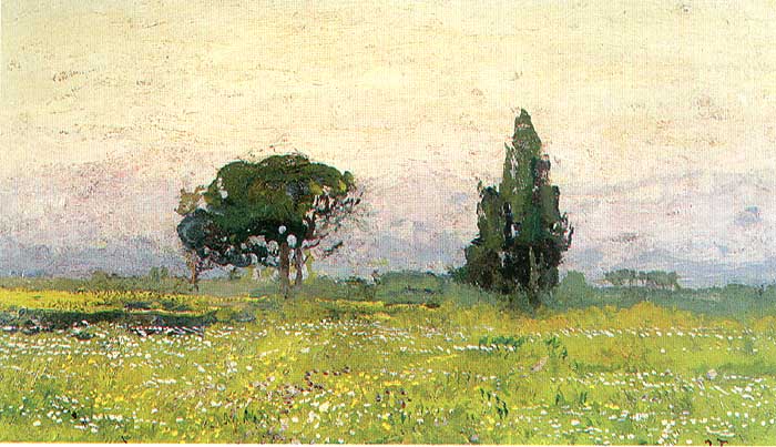 Iwan Trusz (Wysocko 1869 - Lwów 1941) studiował w Krakowskiej Szkole Sztuk Pięknych u I. Jabłońskiego, W. Łuszczkiewicza, J. Unierzyskiego, L. Loefflera, a w latach 1895-97 także u L. Wyczółkowskiego i w pracowni pejzażu J. Stanisławskiego. W 1894 wyjechał do Wiednia i jako wolny słuchacz przez kilka tygodni uczęszczał do tamtejszej ASP. W 1897 równie krótko uczył się w prywatnej szkole A. Ažbego w Monachium. Po studiach wiele podróżował - dwukrotnie, w 1902 i 1908 był we Włoszech, później też w Palestynie i Egipcie, w 1901 i 1902 jeździł na Krym, podróżował po Ukrainie. Stale mieszkał we Lwowie, gdzie w dawnym domu artysty znajduje się obecnie poświęcone mu muzeum. Był przede wszystkim pejzażystą - malował krajobrazy z dalekich podróży oraz nastrojowe pejzaże z Ukrainy. Tworzył także portrety i rodzajowe sceny o tematyce huculskiej. Uprawiał ilustratorstwo, współpracował z ukraińskim teatrem we Lwowie. Zajmował się krytyką artystyczną, pisując artykuły do ukraińskich czasopism „Buducznist“, „Literaturno-Naukowyj Wistnik“, „Artystycznyj Wistnik“ i pracując przy ich redakcji.