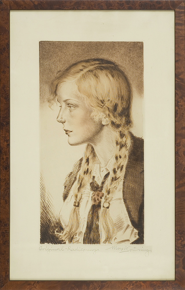 Max Brüning (Delitzsch w Saksonii 1887 – Lindau nad Jeziorem Bodeńskim 1968) – niemiecki malarz, grafik, rytownik; od 1902 uczył się w Akademie für graphische Künste und Buchgewerbe w Lipsku, gdzie od 1907 był uczniem wiedeńskiego prof. Aloisa Kolba i rytownika Petera Palma. W 1912 wyjechał w dłuższą podróż studyjną po południowej i południowo wschodniej Europie oraz Turcji. Następnie kształcił się jeszcze u Franza vov Stucka w Akademii Sztuk Pięknych w Monachium. Od 1915 służył w armii bawarskiej jako wojenny korespondent i malarz-dokumentalista. W Cambrai w północnej Francji portretował żołnierzy - jeńców brytyjskich tworząc liczne rysunki i grafiki (Cytadela w Cambrai). Portretował wówczas także księcia Wilhelma von Preusen, któremu udzielał lekcji rysunku. W pierwszych latach po wojnie przebywał w Lipsku, skąd w 1923 przeniósł się do Berlina. W 1935 ożenił się z malarką Victorią Richter, w 1938 oboje zamieszkali w Igls koło Innsbrucka. Wydalony z Austrii jako obywatel niemiecki w 1945 przeniósł się do Lindau nad Jeziorem Bodeńskim. Swoje prace wystawiał od 1910, min. w Lipsku, Monachium czy Chemitz. Malował olejno, pastelem, był autorem licznych grafik, często kolorowanych akwarelą. Obok portretów eleganckich dam i osób ze świata polityki, filmu, sportu i sztuki malował też martwe natury, obrazy o tematyce orientalnej (Budda, Portret 13. Dalajlamy) a w późniejszym okresie krajobrazy alpejskie i – będące plonem ówczesnych podróży – pejzaże hiszpańskie. Był również autorem żartobliwych rysunków erotycznych. Jego twórczość określana jest jako sztuka salonowa połączona z nurtem tzw. nowej rzeczowości (Neue Sachlichkeit) a w późnym okresie także z postimpresjonizmem. Prace artysty przechowywane są, m.in. w zbiorach muzeów Lipska, Monachium, Lindau czy Chemitz. Zobacz także