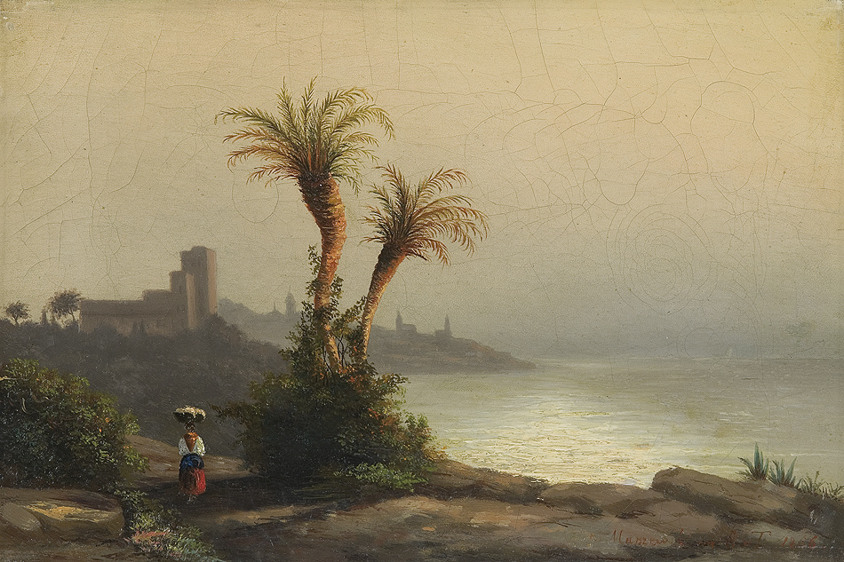 Józef Marszewski (Warszawa lub Wilno 1825 (1826? 1827?) - Warszawa 1883) rozpoczął naukę malarstwa i rysunku w prywatnej szkole Aleksandra Kokulara w Warszawie lub u Wincentego Dmochowskiego w Wilnie bądź też kolejno u obu. W latach 1853-1856 studiował w Akademii Sztuk Pięknych w Petersburgu pod kierunkiem Matwieja N. Worobjowa, uzyskując medale za prace szkolne – w roku 1853 wielki i mały medal srebrny za Widok morski i Widok Newy podczas kry, a w roku 1855 ponownie wielki medal srebrny za Widok miasta Rewla. Także i po studiach, ukończonych w tytułem artysty XIV klasy, utrzymywał kontakty z petersburską Akademią i w roku 1870 uzyskał honorowy tytuł „kłassnyj chudożnik” I stopnia za obraz Widok Mentony. W roku 1857 wyjechał za granicę i następne lata spędził na podróżach po Europie, nadsyłając swoje obrazy na wystawy do Krakowa, Lwowa i Warszawy. Kilkakrotnie odwiedził wówczas Paryż, był w Hiszpanii i Szwajcarii, przez kilka lat mieszkał w Rzymie, a w latach 1858 i 1864 przebywał w Düsseldorfie, gdzie uczył się u Andreasa Achenbacha. Wyprawiał się też na Ukrainę, na Litwę i do Kurlandii, robił wycieczki w Tatry (1865 i 1866). Około roku 1872 osiadł w Warszawie, gdzie spędził ostatnie lata życia. W 1873, po stracie złożonych w banku pieniędzy, popadł w głęboką depresję, która z czasem przerodziła się w chorobę psychiczną. Marszewski był przede wszystkim pejzażystą. Podczas swoich podróży i wędrówek malował zarówno widoki z Hiszpanii, Włoch, Szwajcarii, Niemiec, Kurlandii, jak z Ukrainy i Litwy (szczególnie z okolic Wilna) oraz z Tatr. Krajobraz traktował w sposób emocjonalny, typowy dla malarzy romantyków, próbując oddać nastroje panujące w przyrodzie. Malował tajemnicze nocne pejzaże z bladym smętnym księżycem i rozżarzone zachodzącym słońcem, widoki z charakterystycznymi, malowniczymi motywami wody, skał, ruin, kościółków czy wiatraków. Wiadomo, że malował też portrety i sceny religijne. We wczesnym okresie namalował także batalistyczną kompozycję Przejście przez Berezynę (1847).