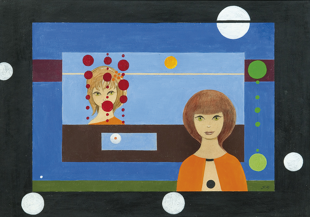 Kazimierz Mikulski (Kraków 1918 - Kraków 1998) rozpoczął studia malarskie przed II wojną światową w ASP w Krakowie, kontynuował je w latach 1939-1940 pod kierunkiem prof. Fryderyka Pautscha w Kunstgewerbeschule, powstałej za okupacji w miejsce Akademii. Po wojnie ukończył dwuletnie studia aktorskie w Studio Dramatycznym przy Starym Teatrze w Krakowie i do 1948 pracował jako aktor. Jednocześnie w 1945 ukończył Warsztat Filmowy Młodych. W latach 1948-1979 był kierownikiem plastycznym i scenografem Teatru Groteska w Krakowie, dla którego projektował lalki, kostiumy, dekoracje itp. Równolegle cały czas zajmował się malarstwem i działalnością w kręgu Tadeusza Kantora, zrazu jako członek Gru-py Młodych Plastyków, a od 1957 w Grupie Krakowskiej, której był współzałożycielem i prezesem w latach 1965-1967. Był też członkiem zespołu teatru Cricot 2, grał m.in. w spektaklach Kurka wodna, Nadobnisie i koczkodany, Umarła klasa oraz we własnej sztuce Cyrk. W swych obrazach z drugiej poł. lat 40. artysta przedstawiał lekkie, linearne formy unoszące się w pustych przestrzeniach. Było to malarstwo zarazem surrealistyczne i abstrakcyjne. Lecz już ok. 1950 zaczął malować w charaktery-styczny dlań sposób - odrzucając abstrakcję, prezentował niezliczone warianty i układy kilku ulubionych motywów (głowa lub postać kobiety-lalki, koty, motyle).